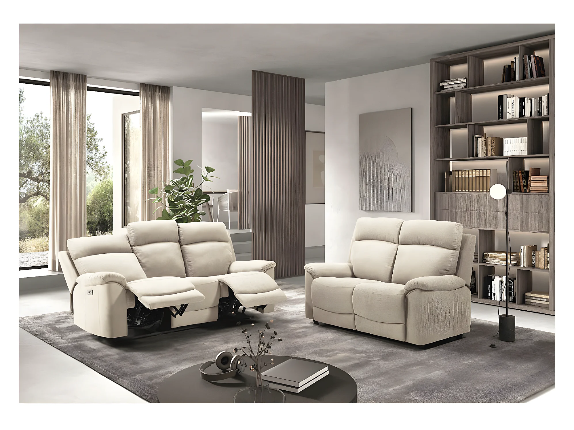 Canapé de relaxation en tissu Katika-Couleur Beige clair-Système Manuel-3 places
