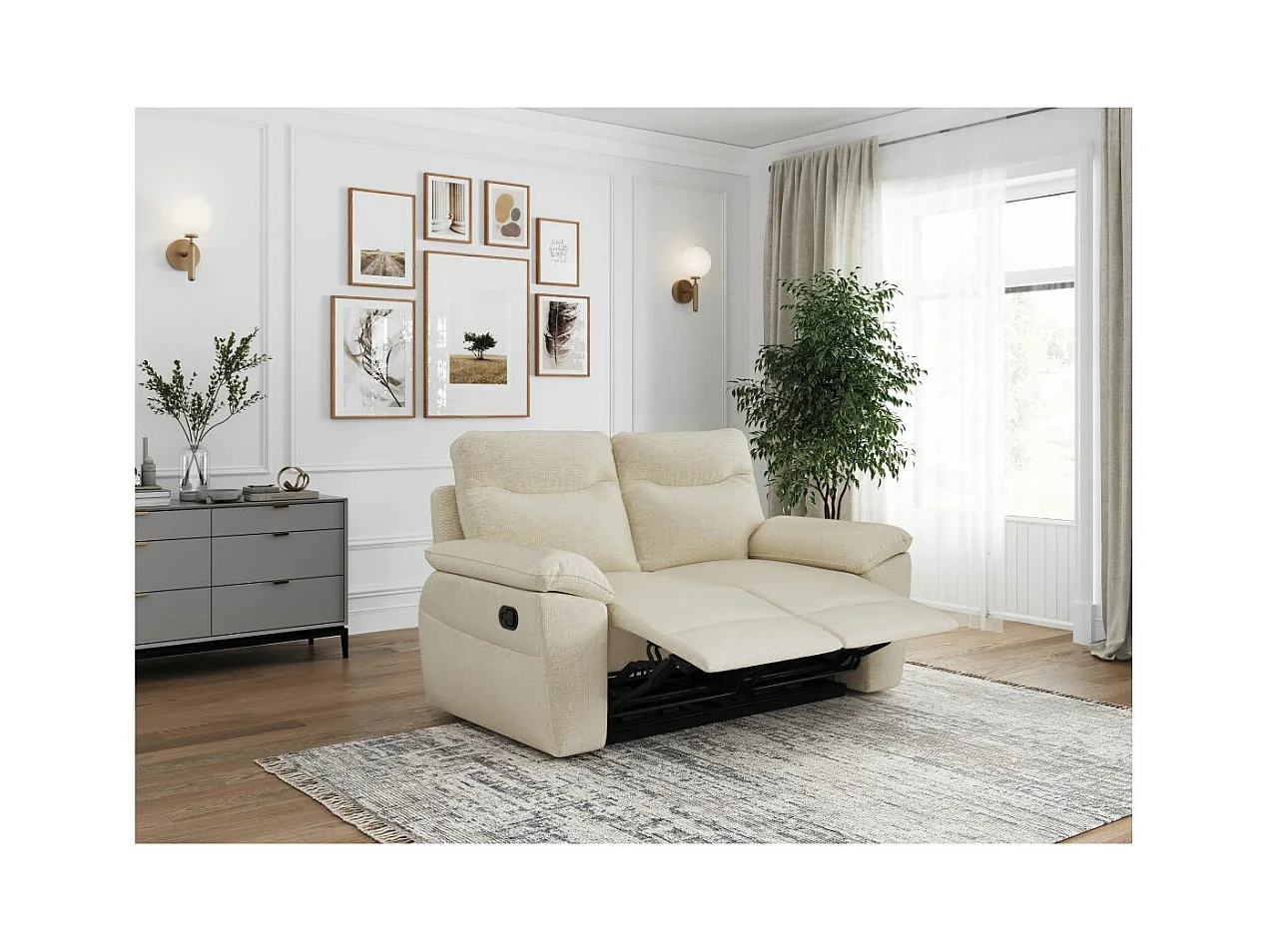 Canapé de relaxation manuel Ross 2 places en tissu - Beige - L160 x P100 x H102cm - Loungitude