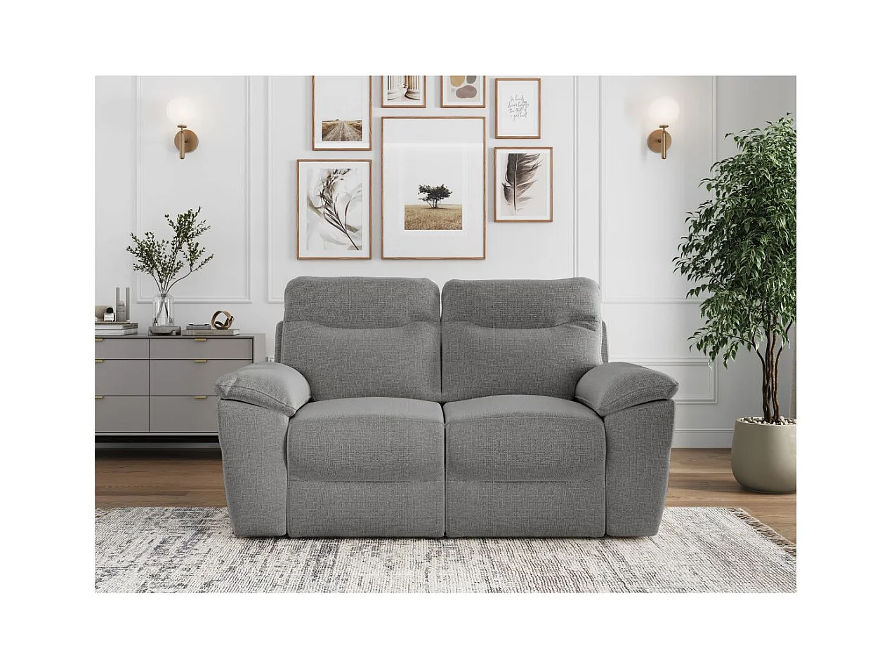 Canapé de relaxation manuel Ross 2 places en tissu - Gris - L160 x P100 x H102cm - Loungitude