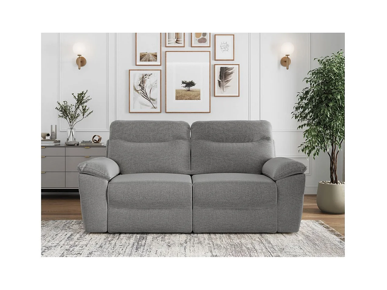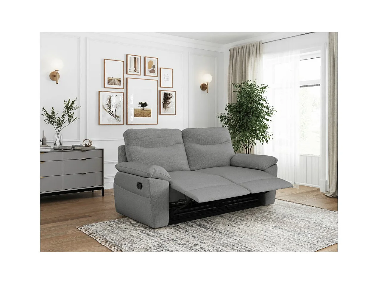 Canapé de relaxation manuel Ross 3 places en tissu - Gris - L200 x P100 x H102cm - Loungitude