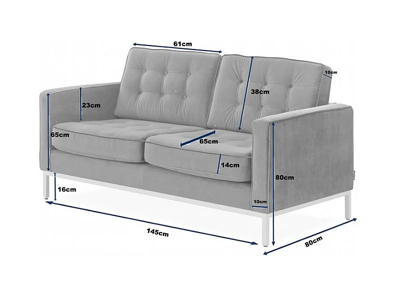 Canapé design 2 places capitonné cuir noir Flora 145cm