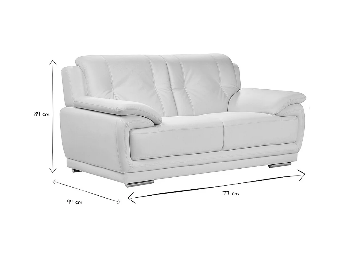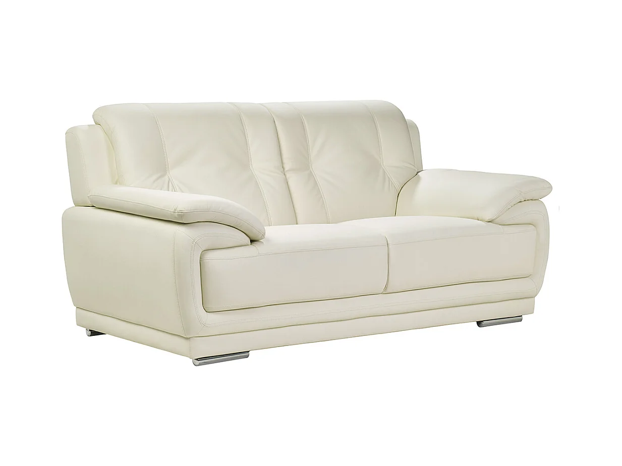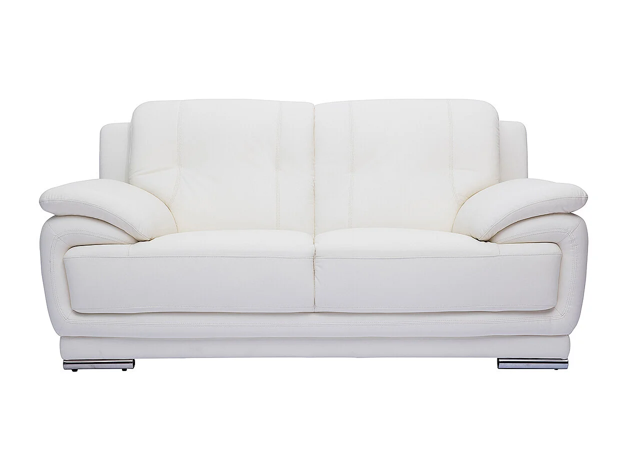 Canapé design 2 places en cuir blanc et acier chromé TAMARA