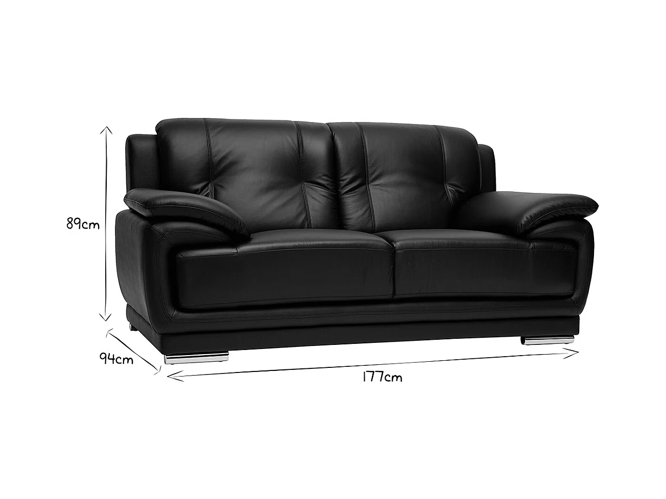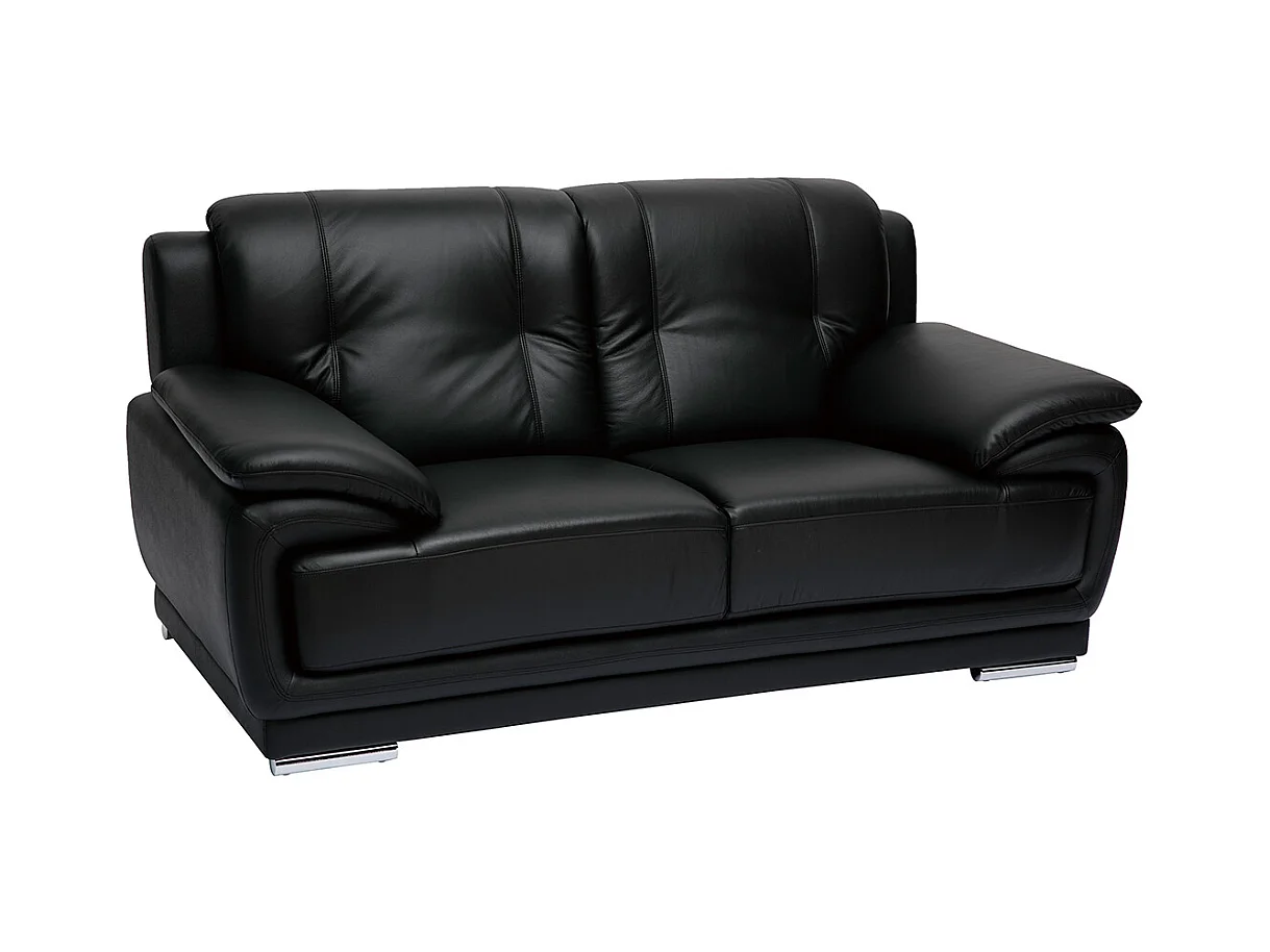 Canapé design 2 places en cuir noir et acier chromé TAMARA