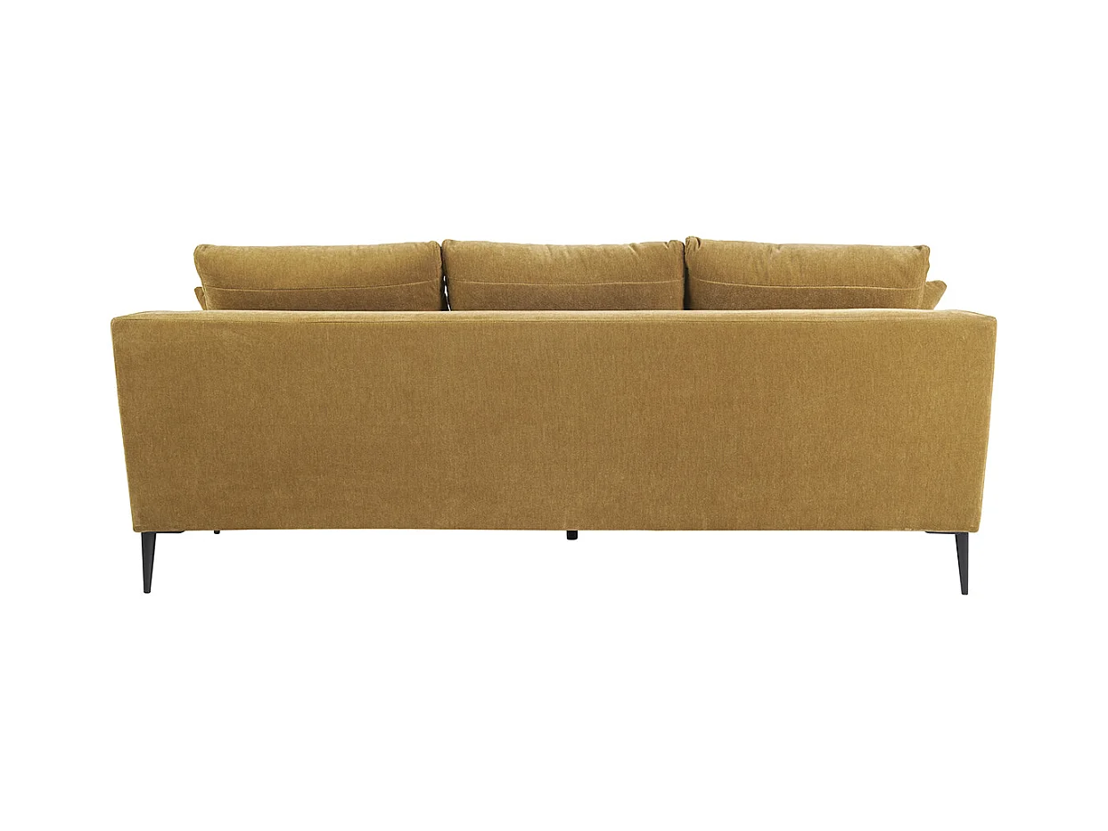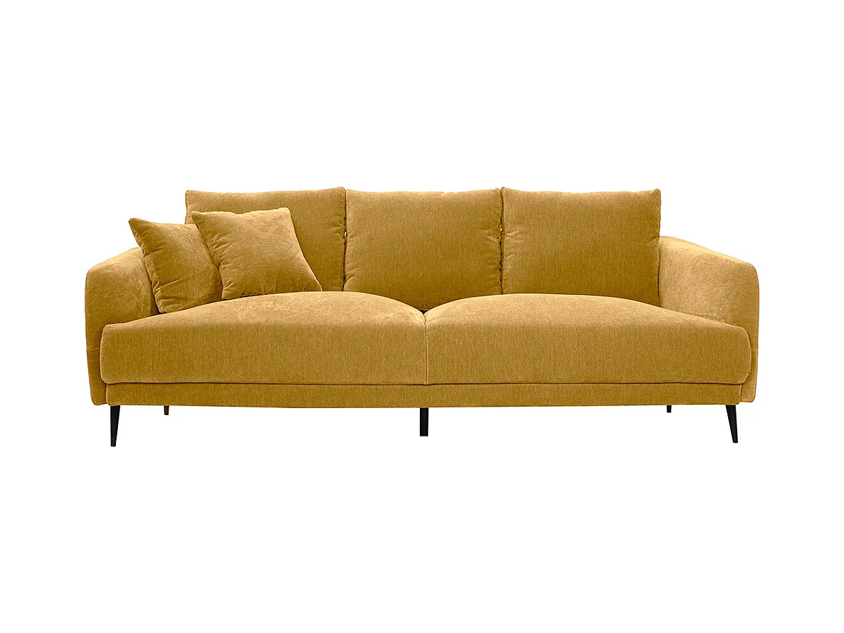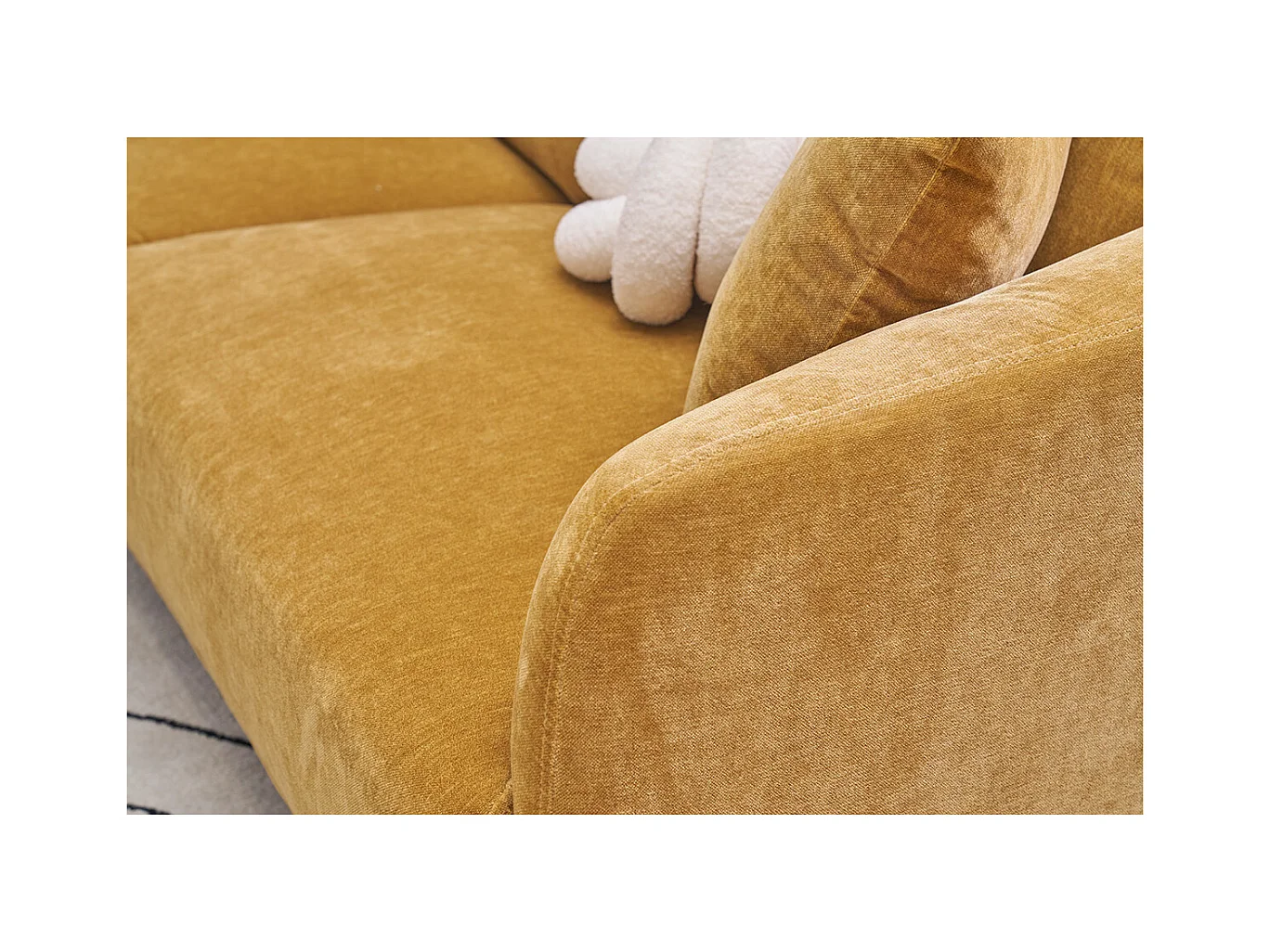 Canapé design 3 places en tissu effet velours jaune curry et métal noir JERRY