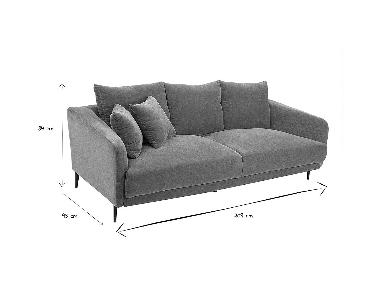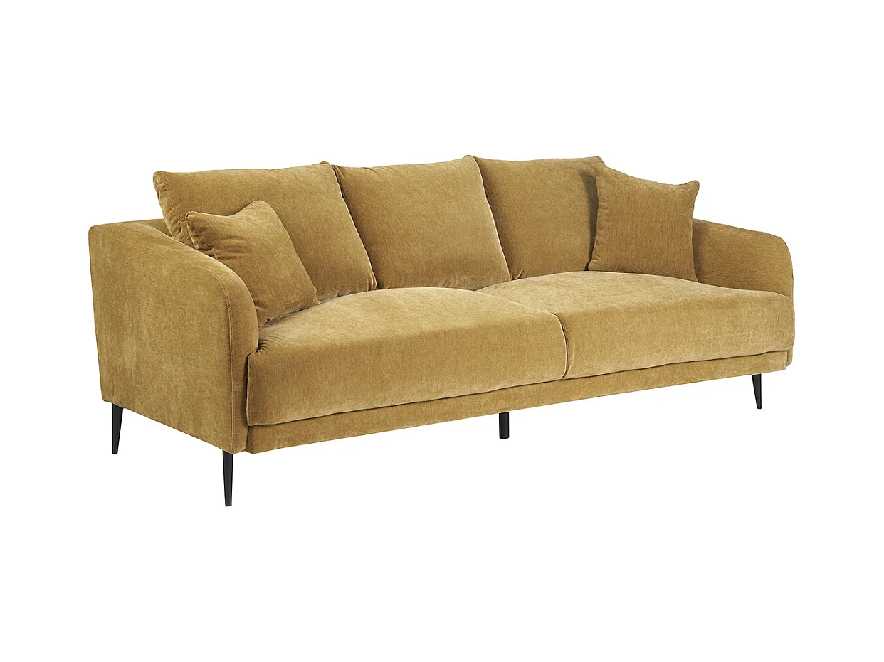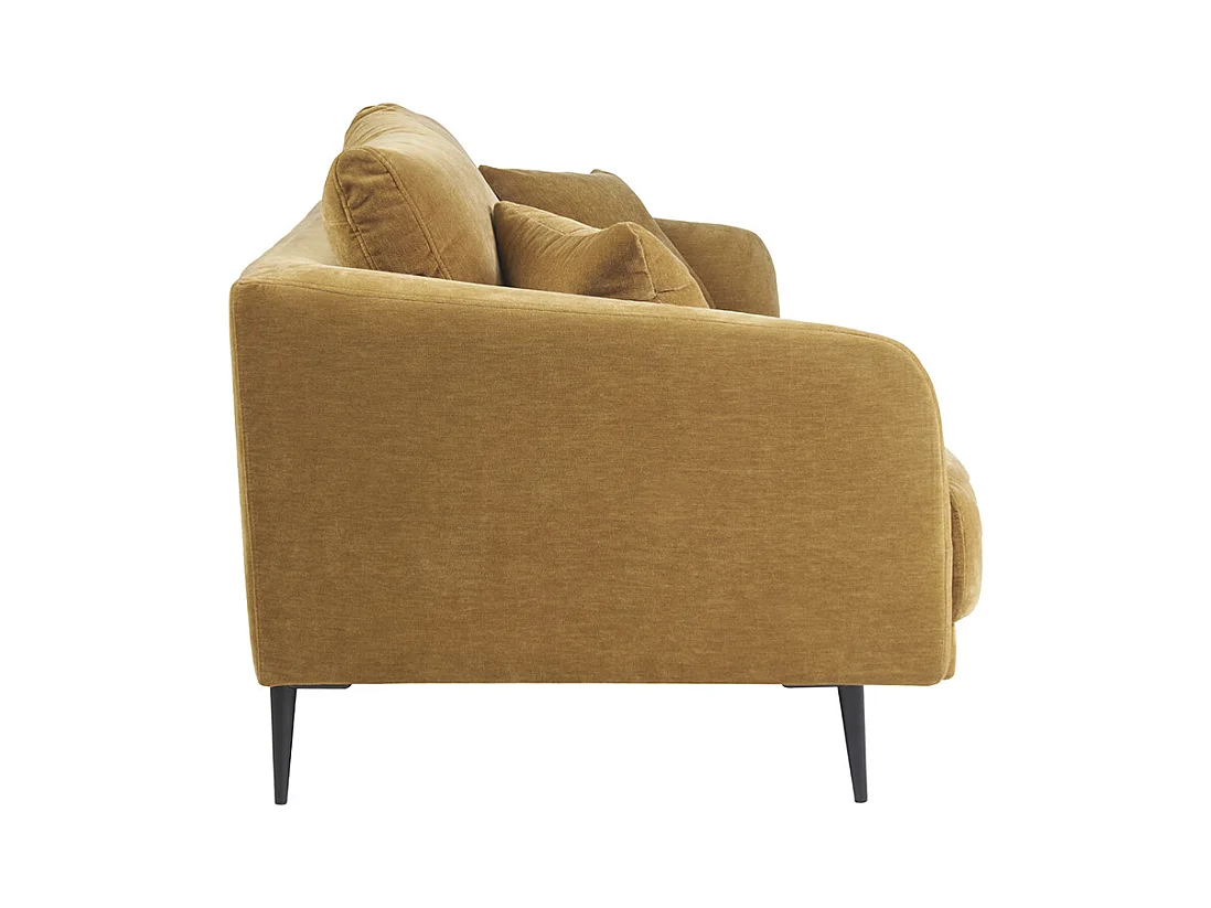 Canapé design 3 places en tissu effet velours jaune curry et métal noir JERRY