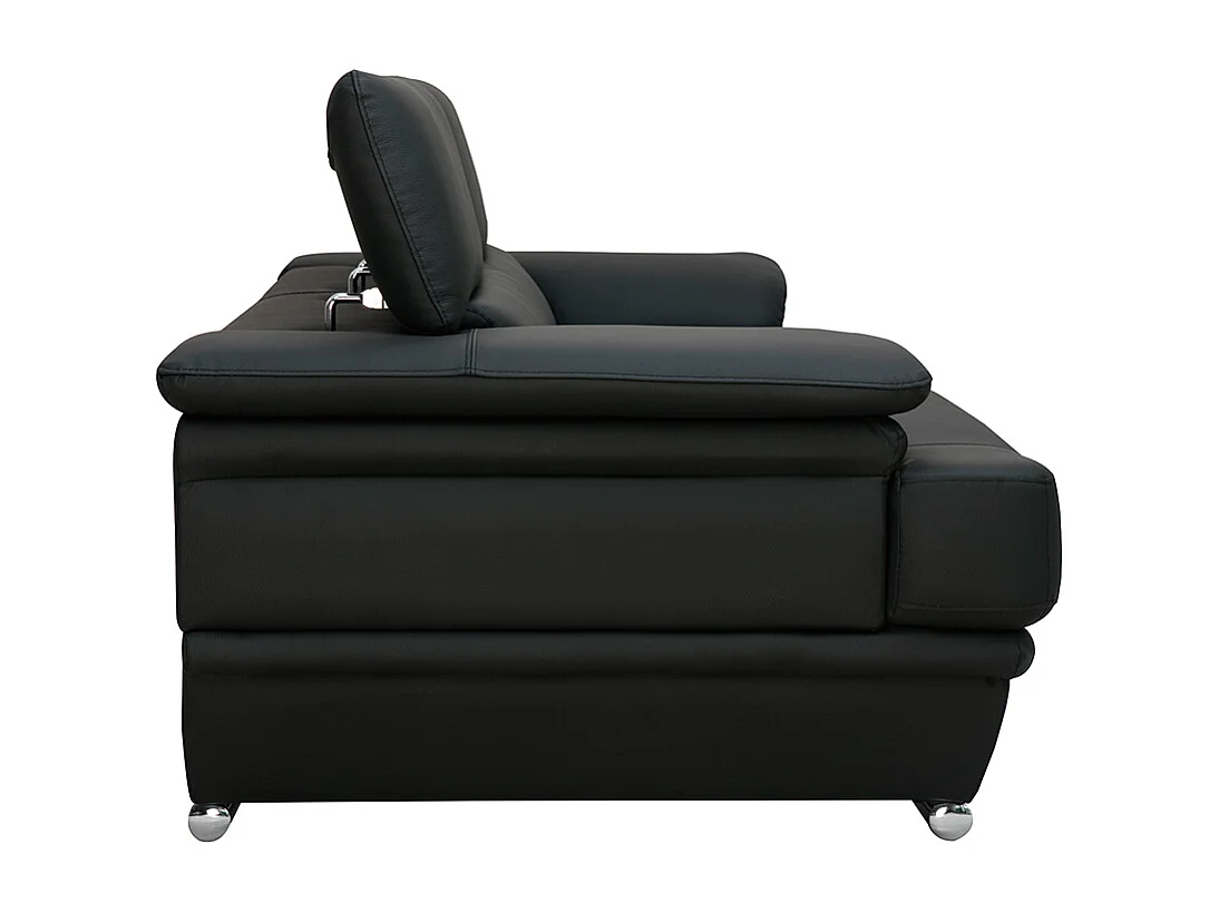 Canapé design avec têtières ajustables 3 places cuir noir et acier chromé EWING