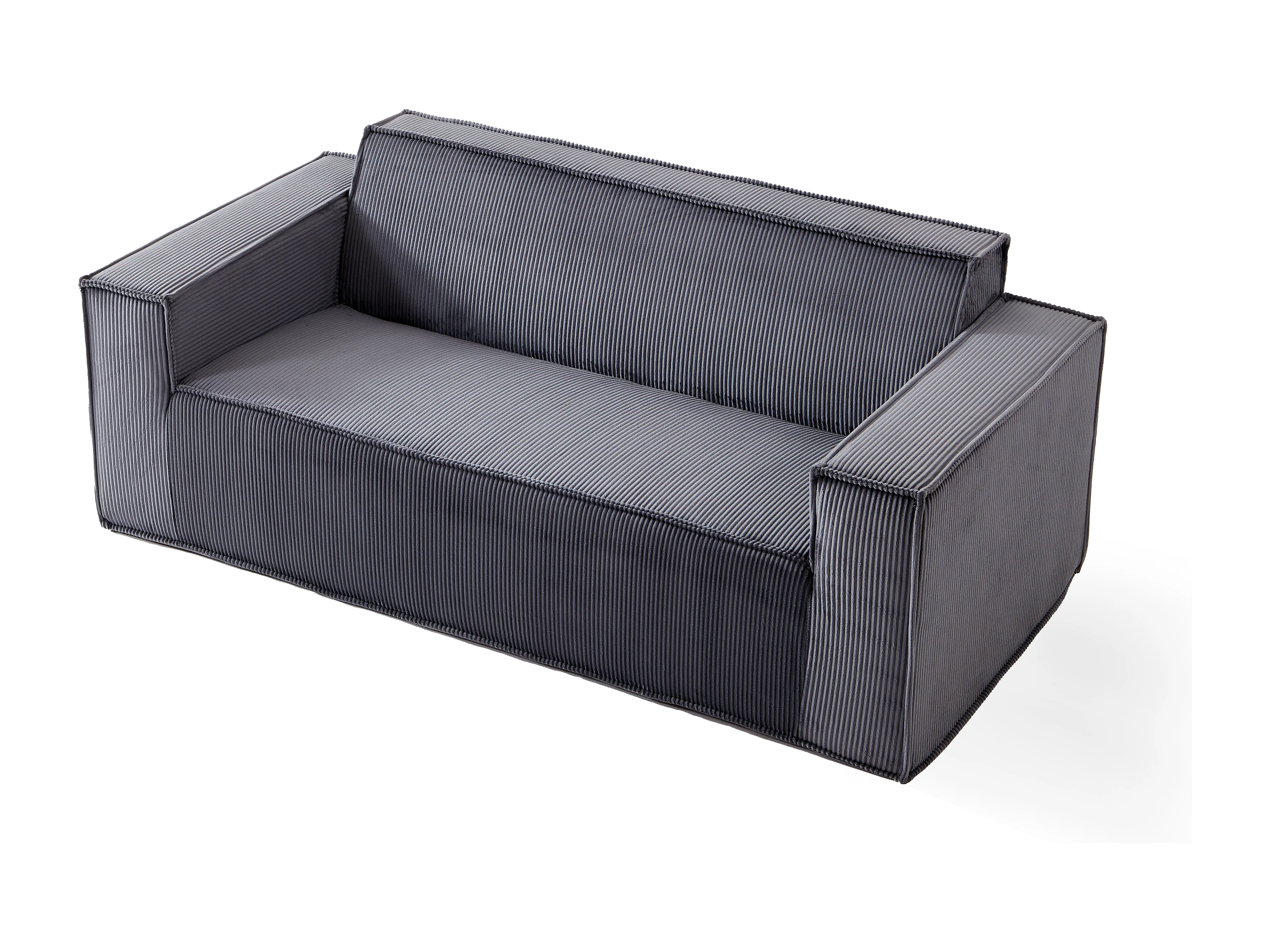 Canapé deux places à assise profonde, velours côtelé, sans pieds, ne nécessite aucun assemblage, facile à déplacer, gris
