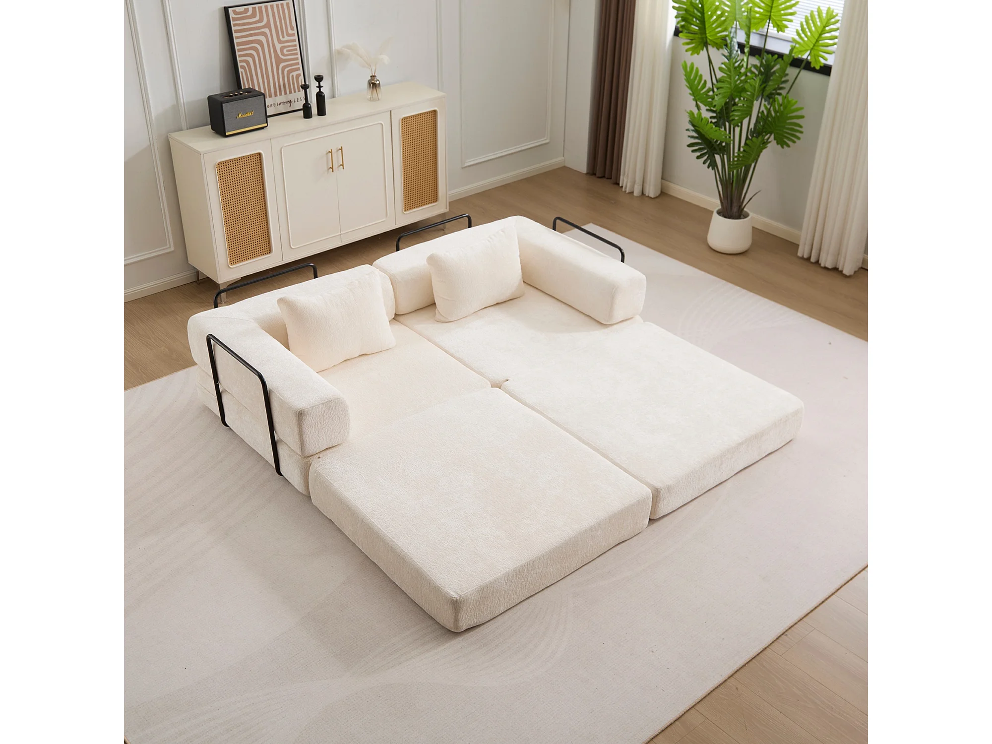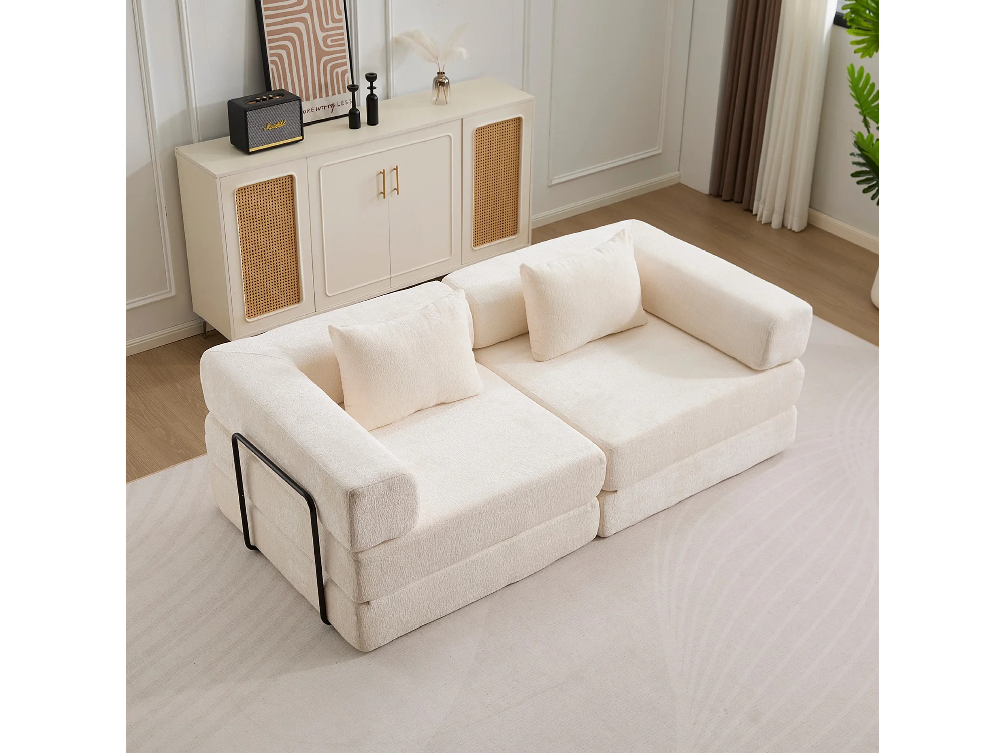 Canapé deux places, canapé-lit modulable convertible, revêtement en chenille, aucun assemblage requis, blanc