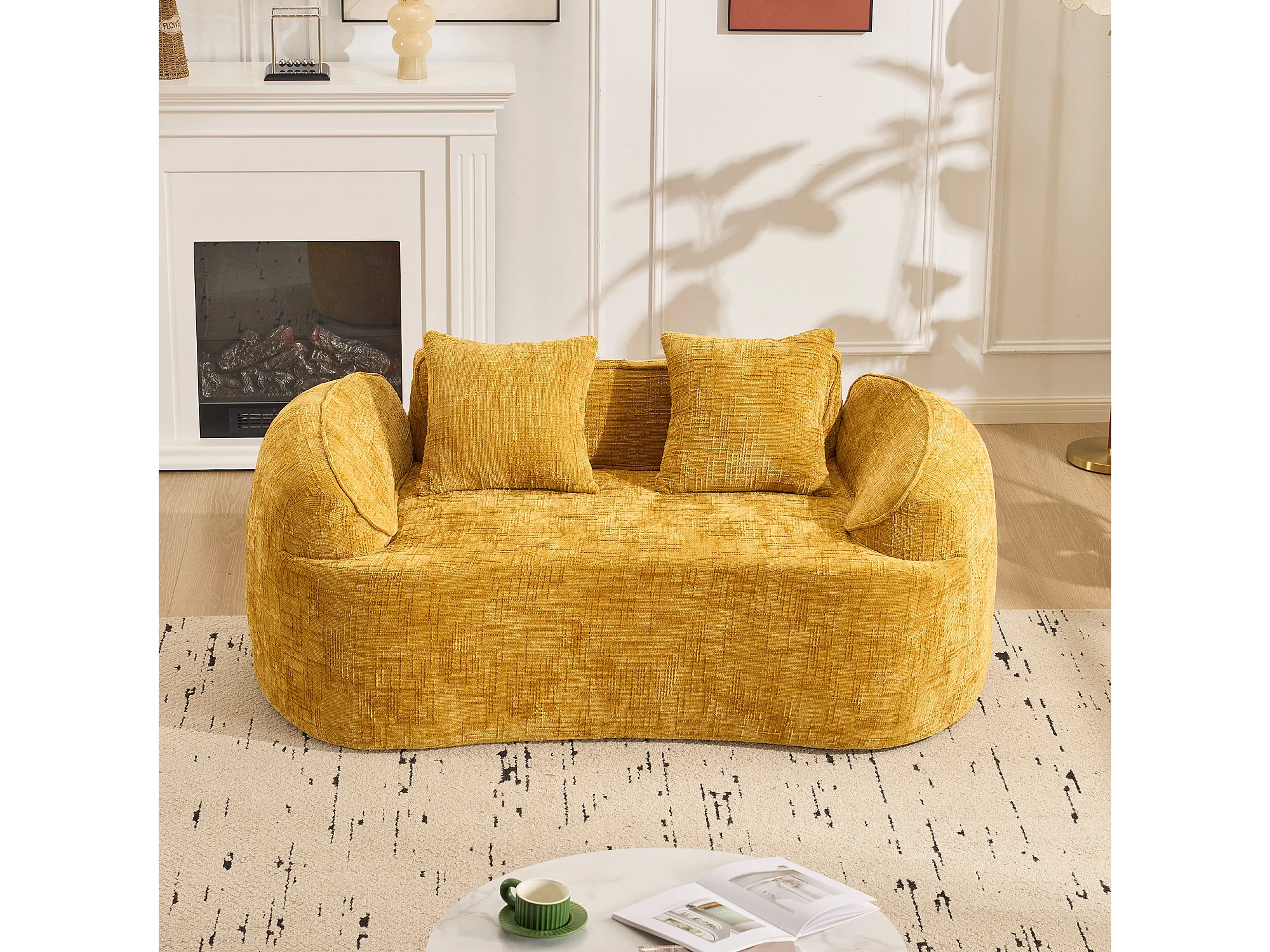 Canapé deux places design courbé finition soignée mousse et ressorts prêt à lusage jaune