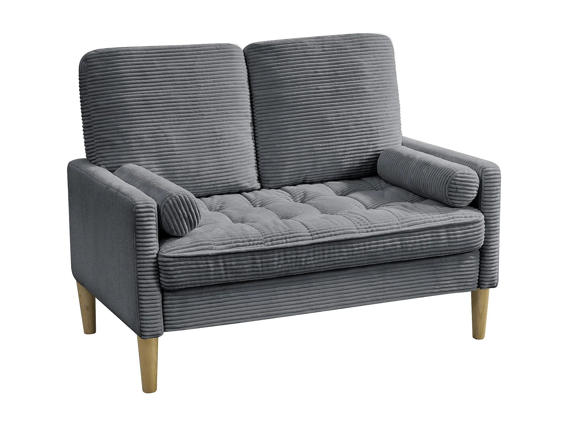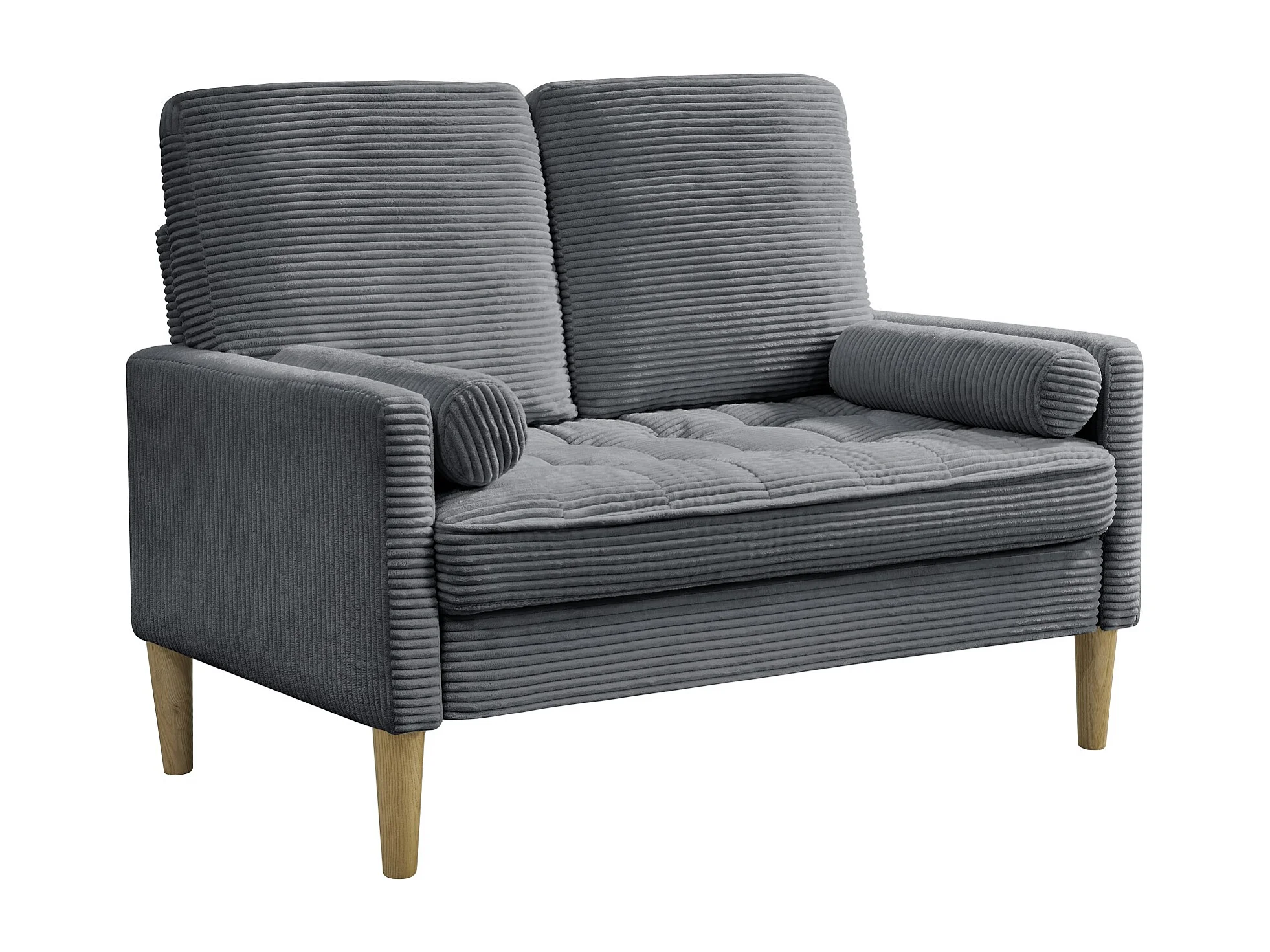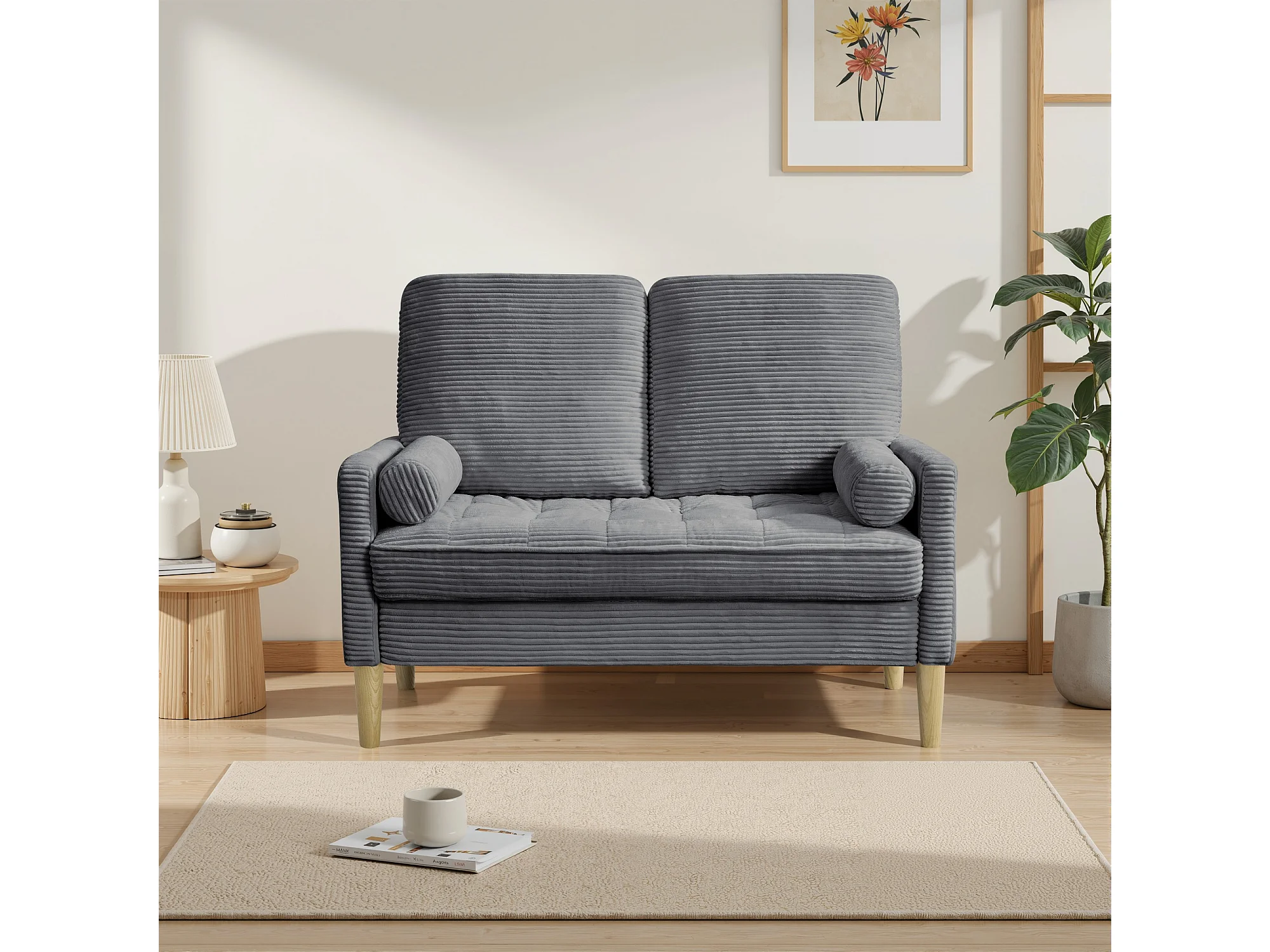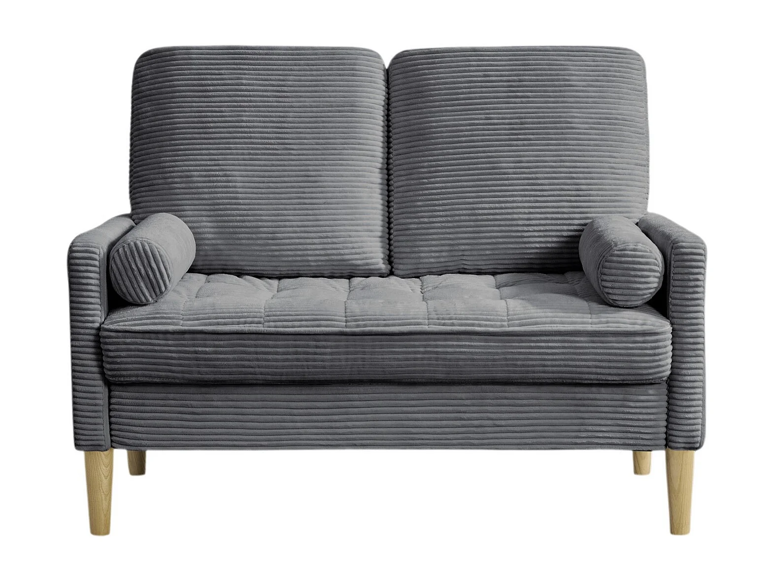 Canapé deux places en velours côtelé, style nordique, canapé rembourré avec coussins moelleux, gris