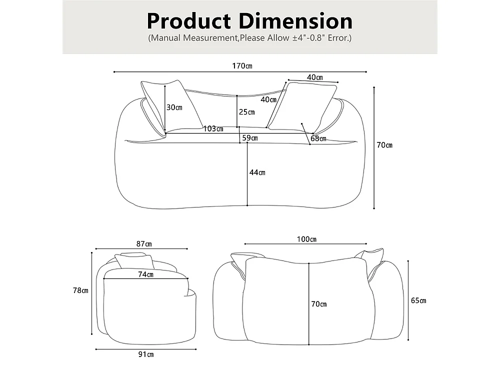 Canapé deux places incurvé rosa avec accoudoirs, canapé compressible avec 2 coussins, aucun assemblage requis