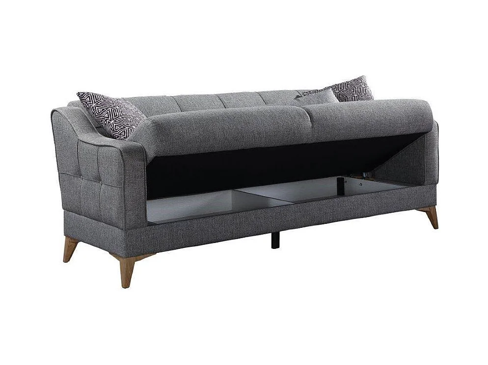 Canapé Dfranzo, Canapé de rangement 3 places linéaire avec 3 coussins inclus, Canapé de salon en tissu rembourré avec ouverture clic-clac, 207x82xh92 cm, Gris