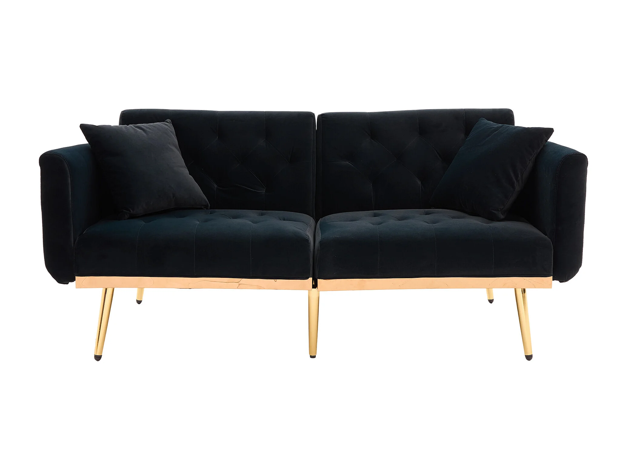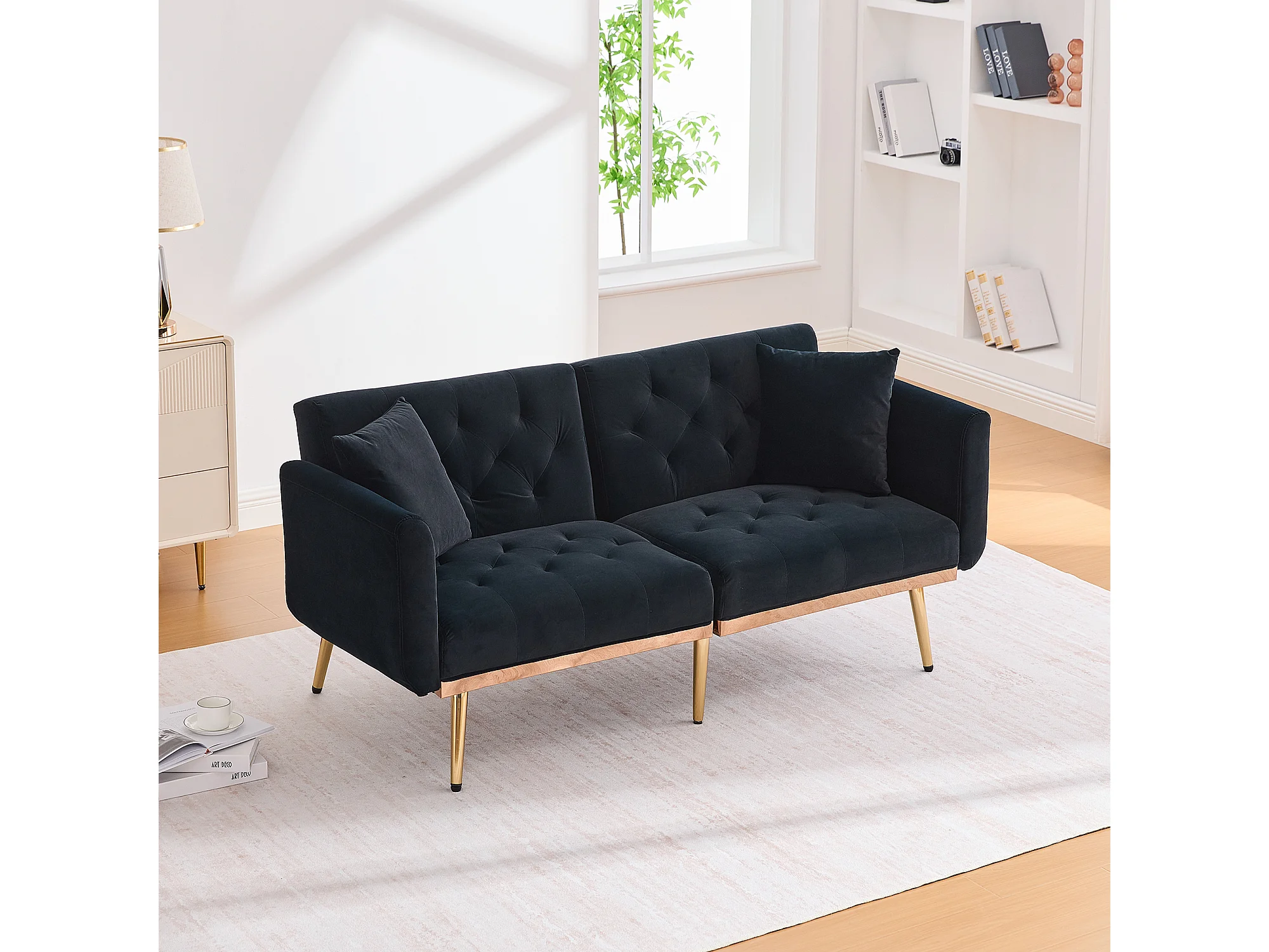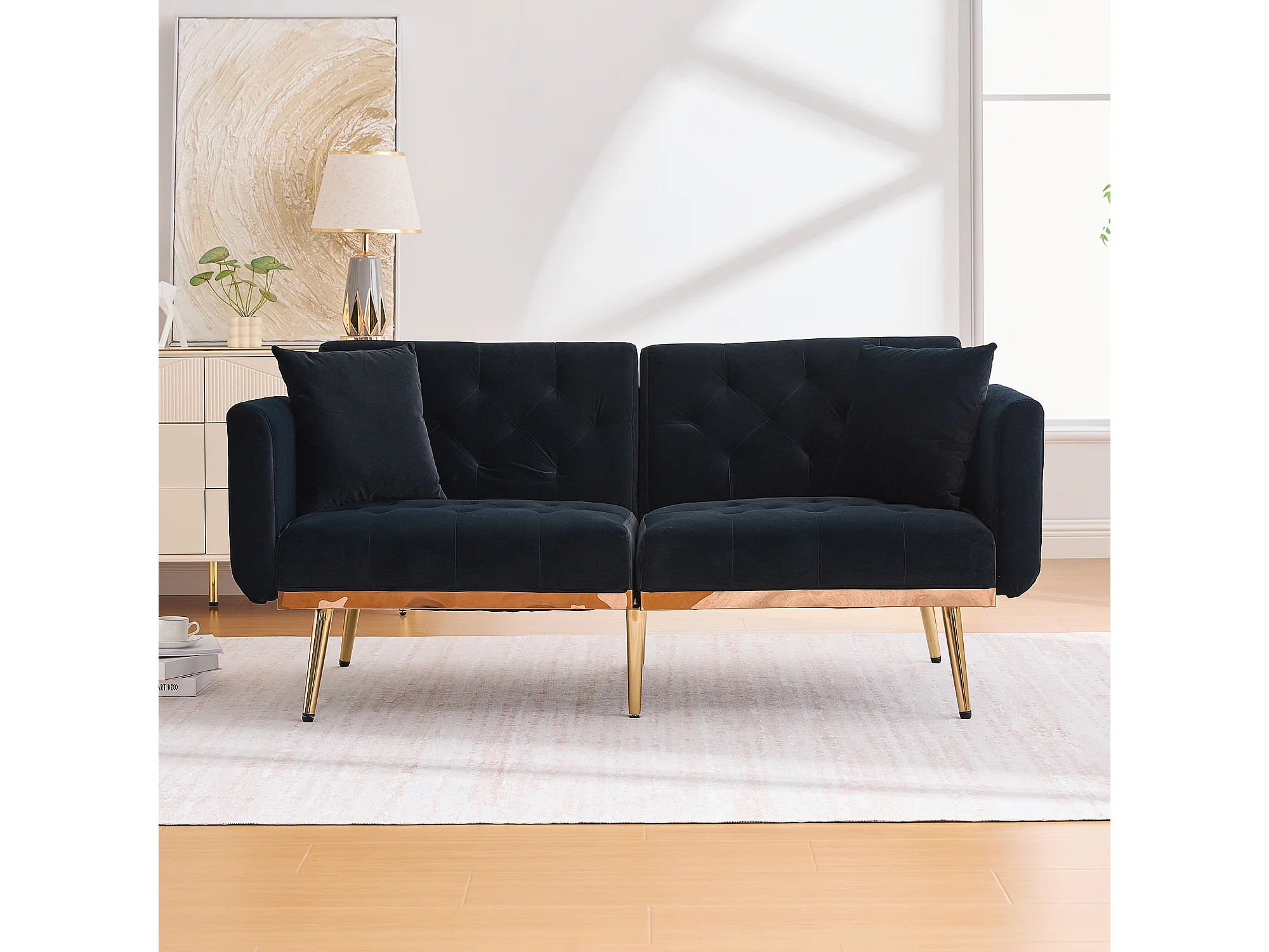 Canapé double convertible 165x72.5x75cm 2 Coussins Rembourrage Épais Velours Noir Montage Facile