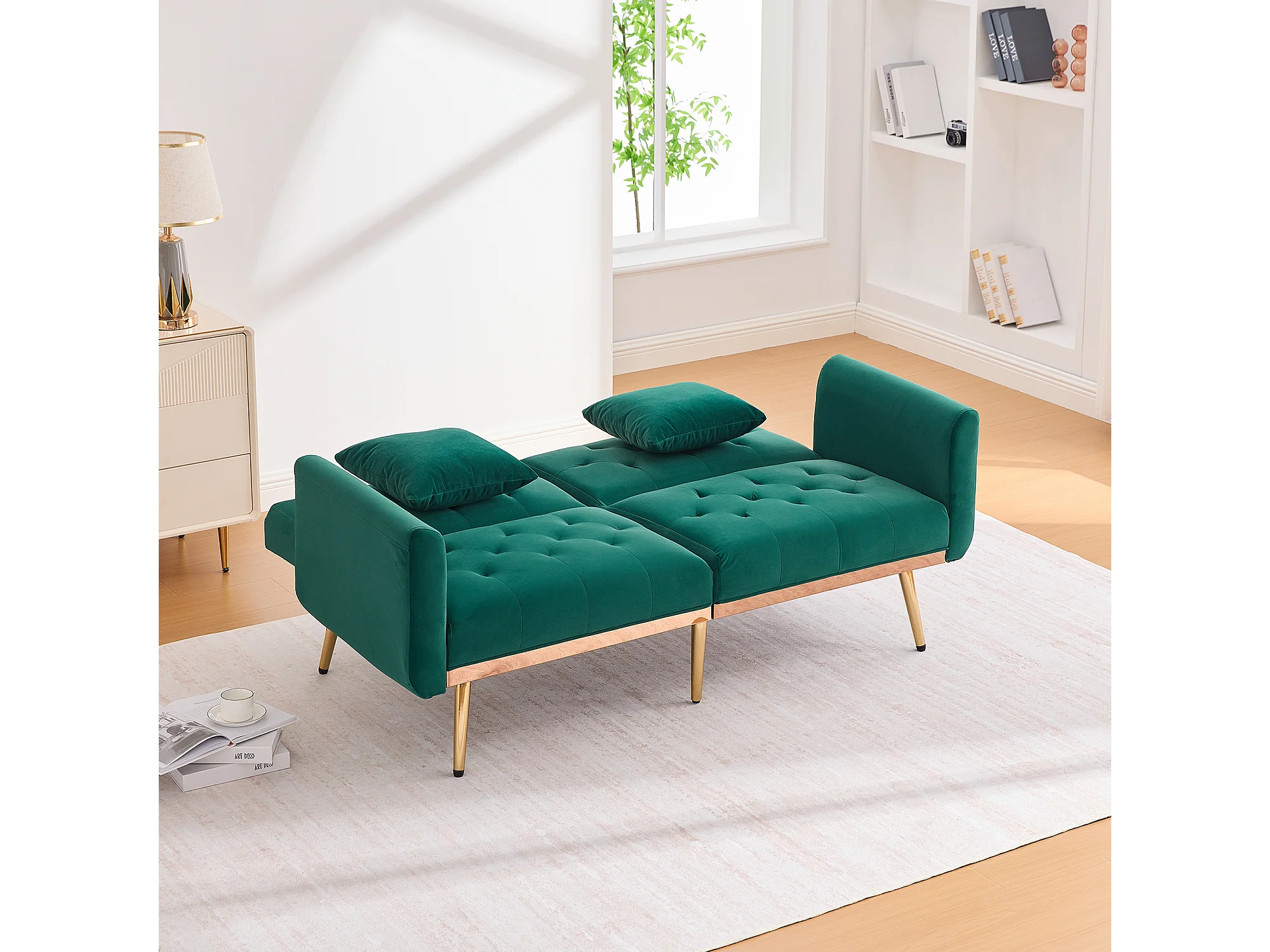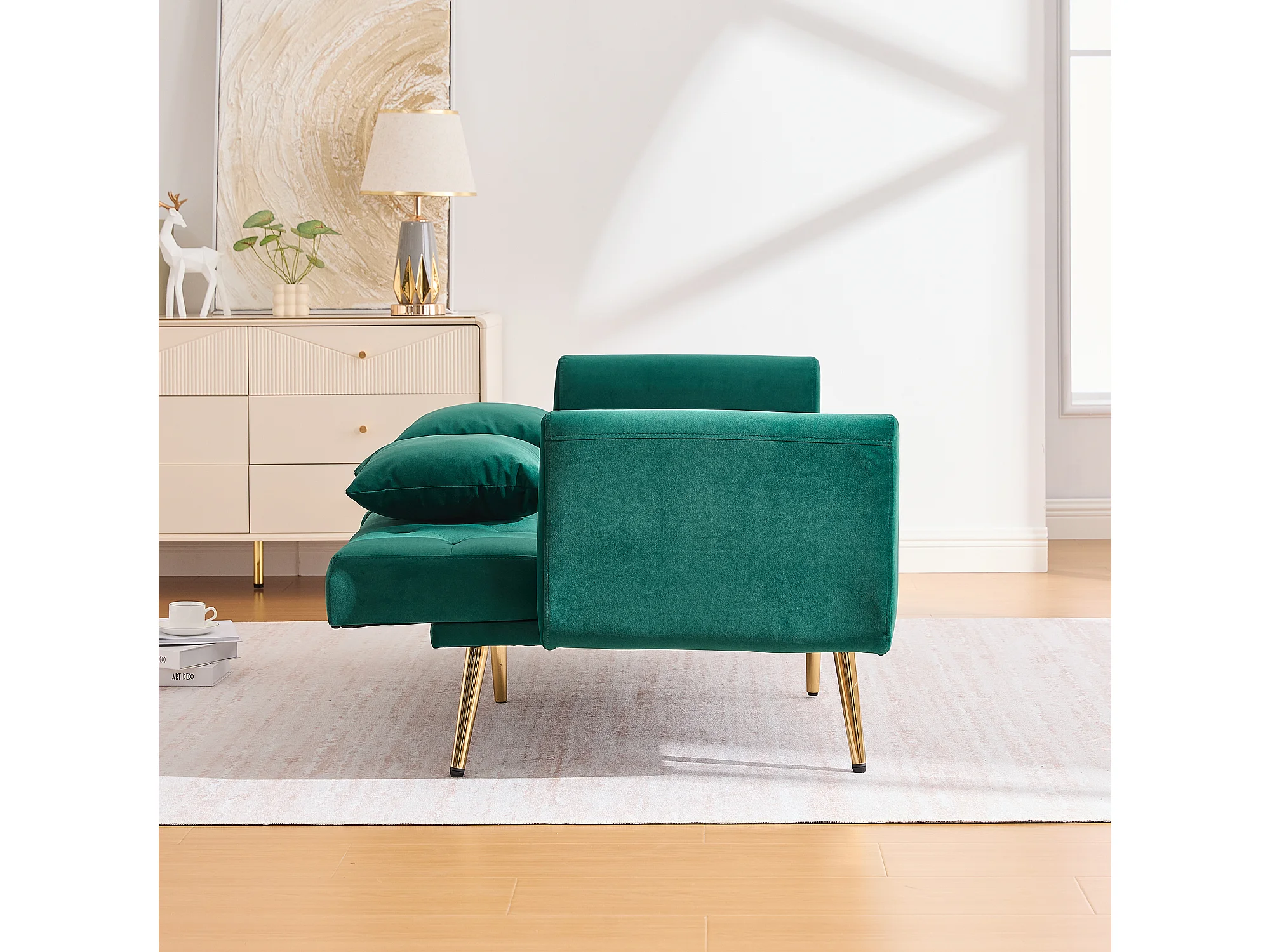 Canapé double convertible 165x72.5x75cm style moderne montage facile pieds métal dorés velours Émeraude