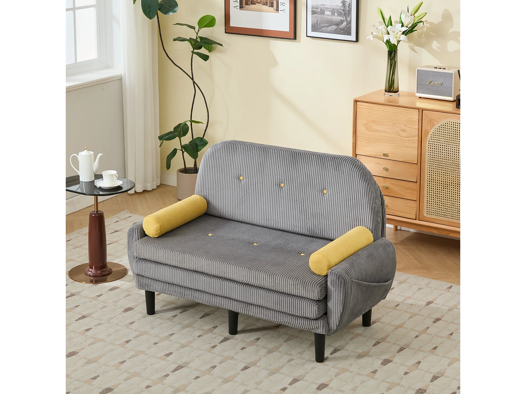 Canapé double en velours côtelé, pouvant servir de lit de jour et de fauteuil de détente avec espace de rangement,gris