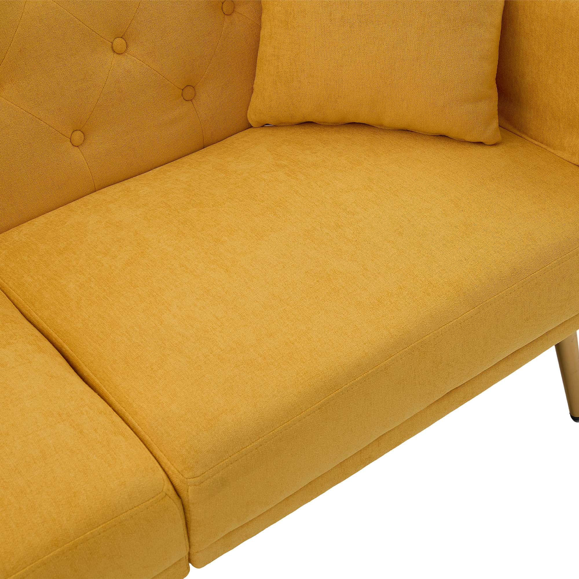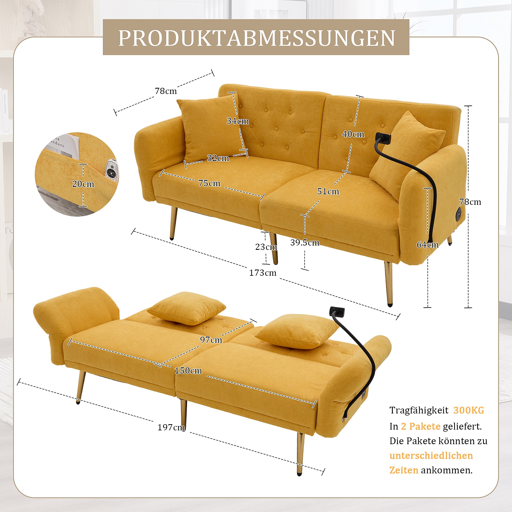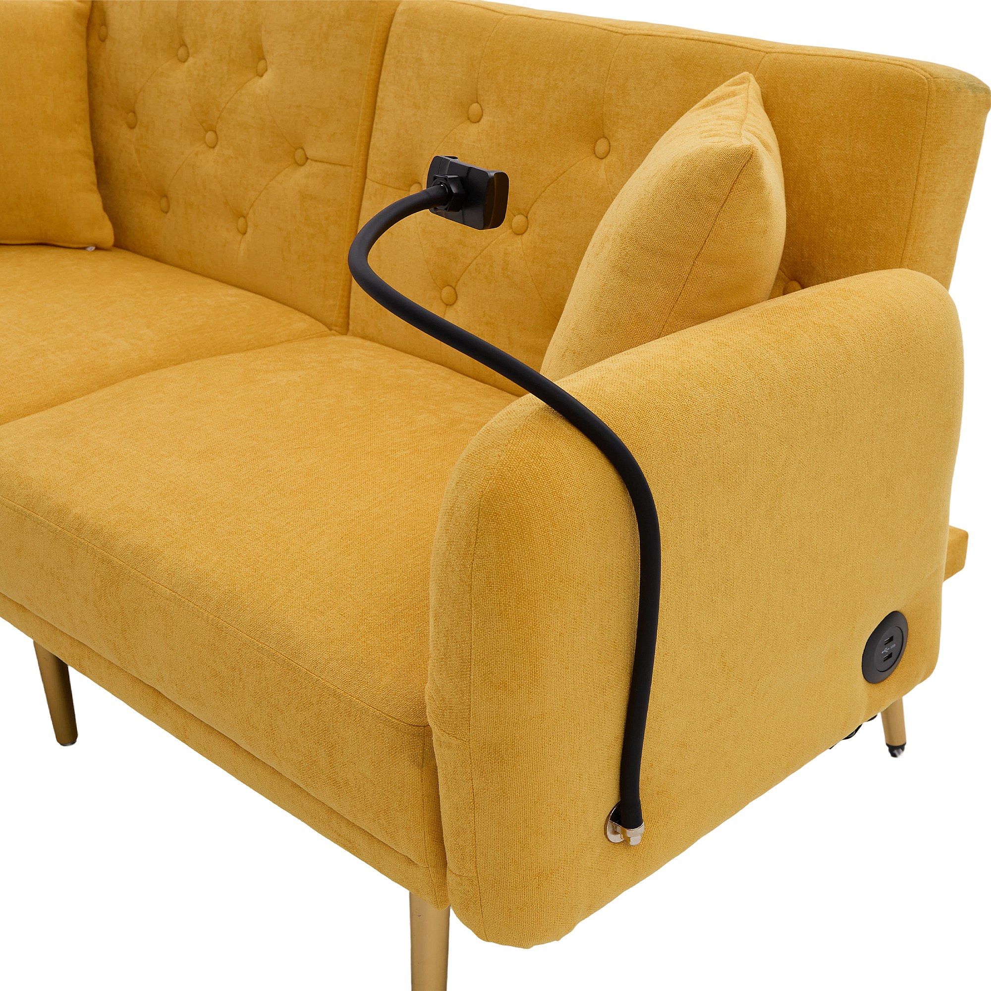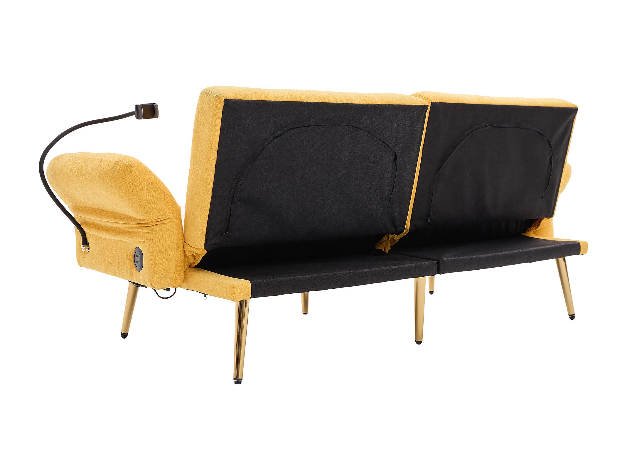 Canapé droit 2 places convertible jaune avec 2 ports USB, support de téléphone et poches latérales 173x78X78cm