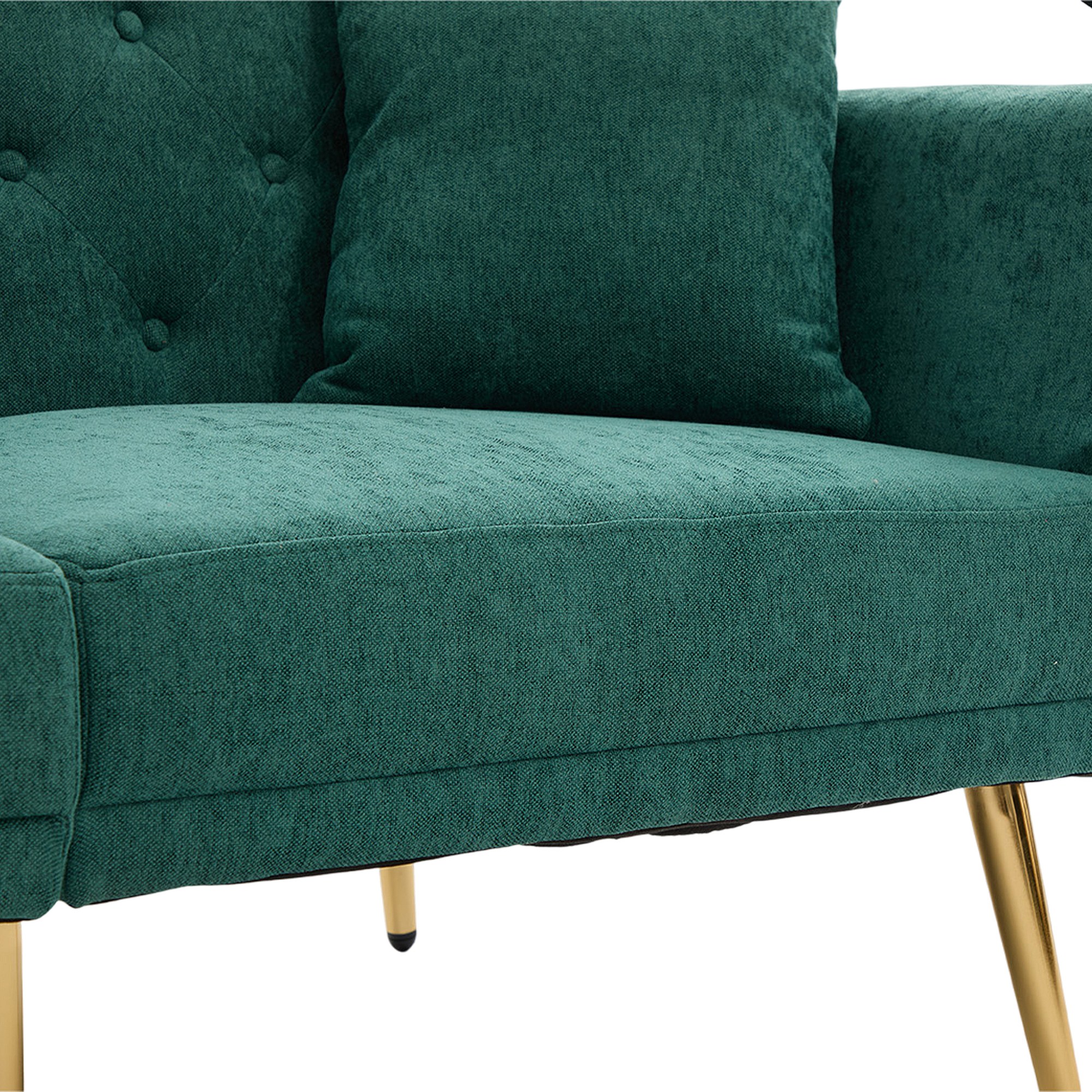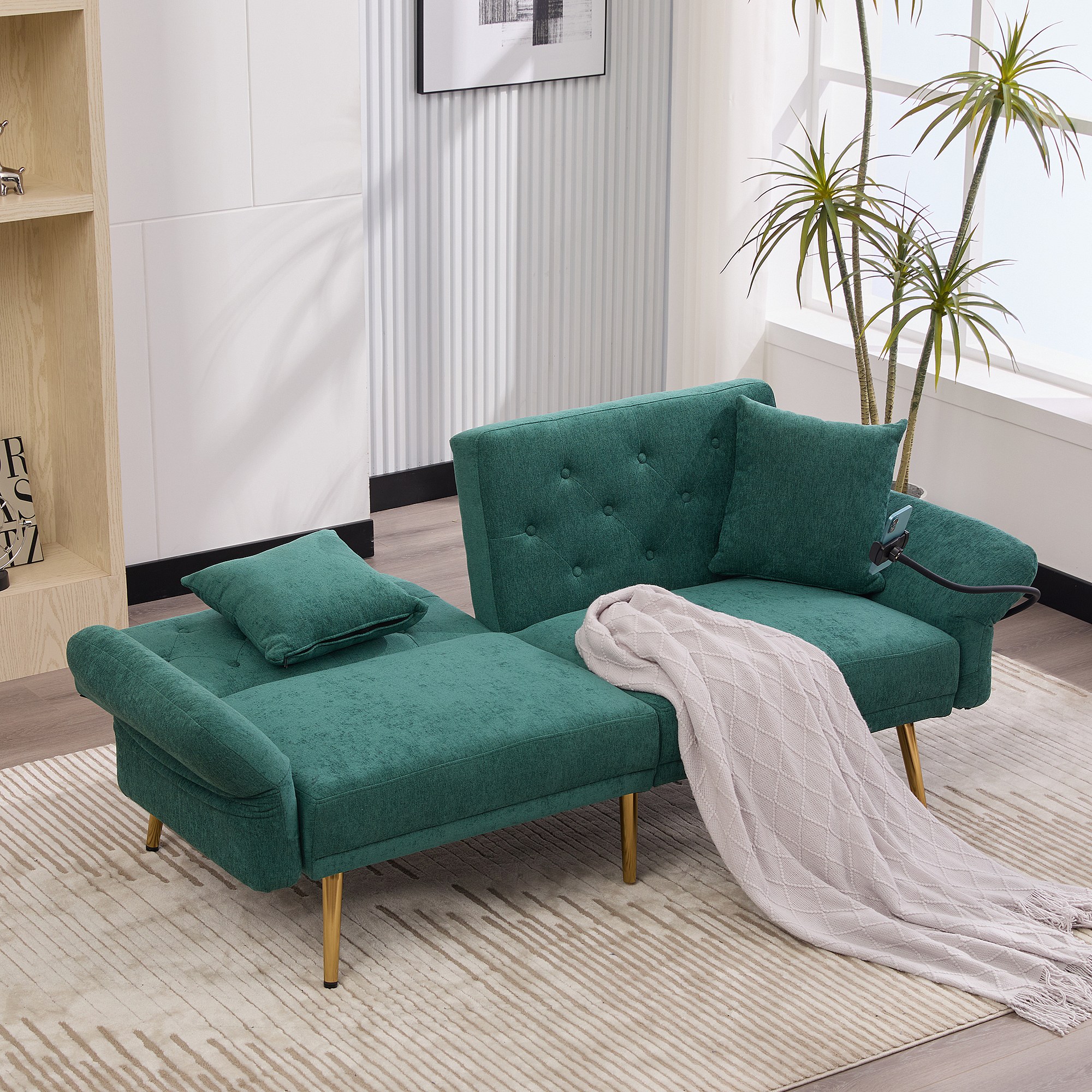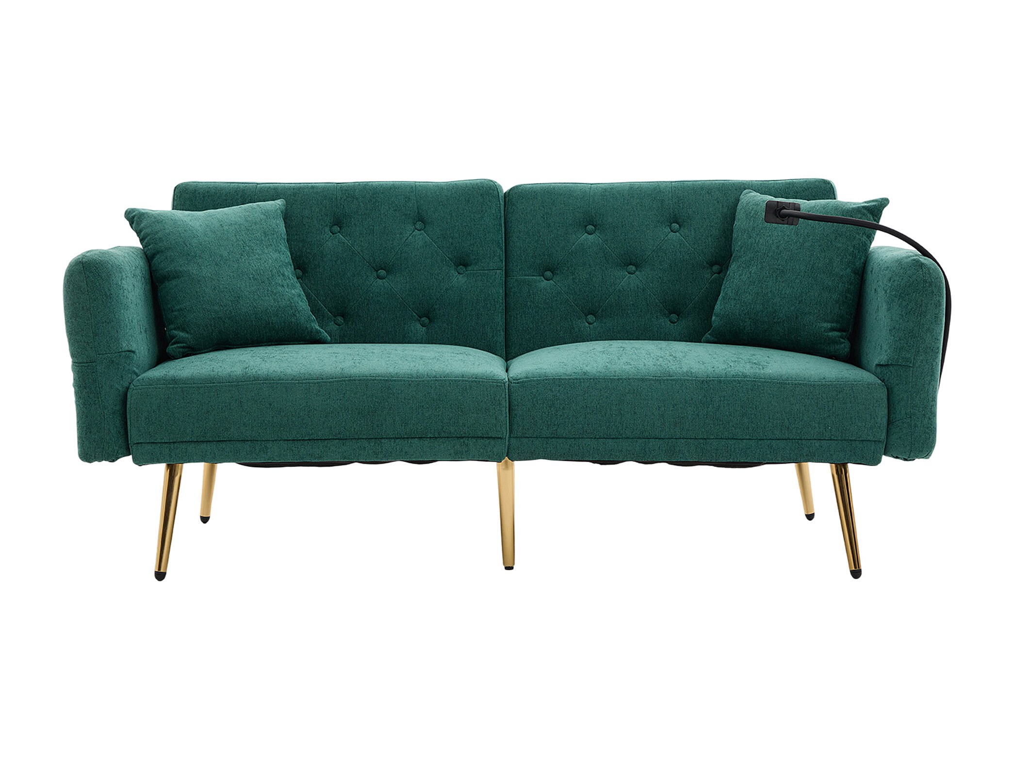 Canapé droit 2 places convertible vert émeraude avec 2 ports USB, support de téléphone et poches latérales 173x78X78cm
