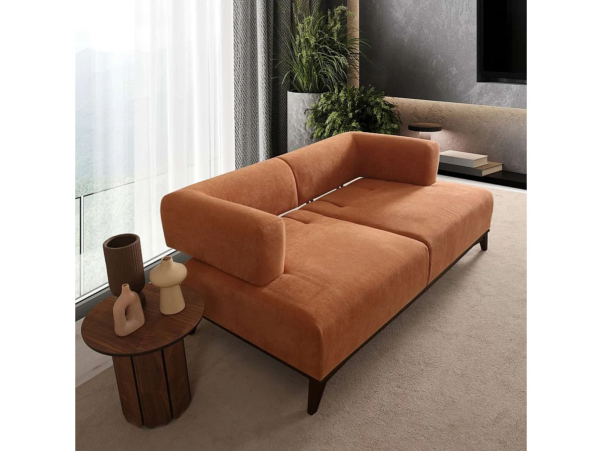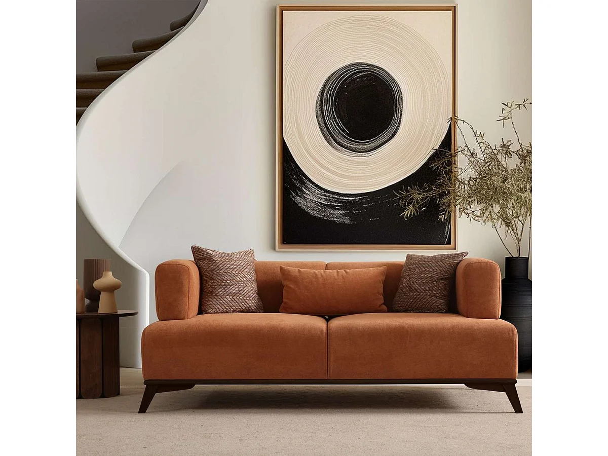Canapé droit 2 places en tissu rouille, piètement noir - Tano