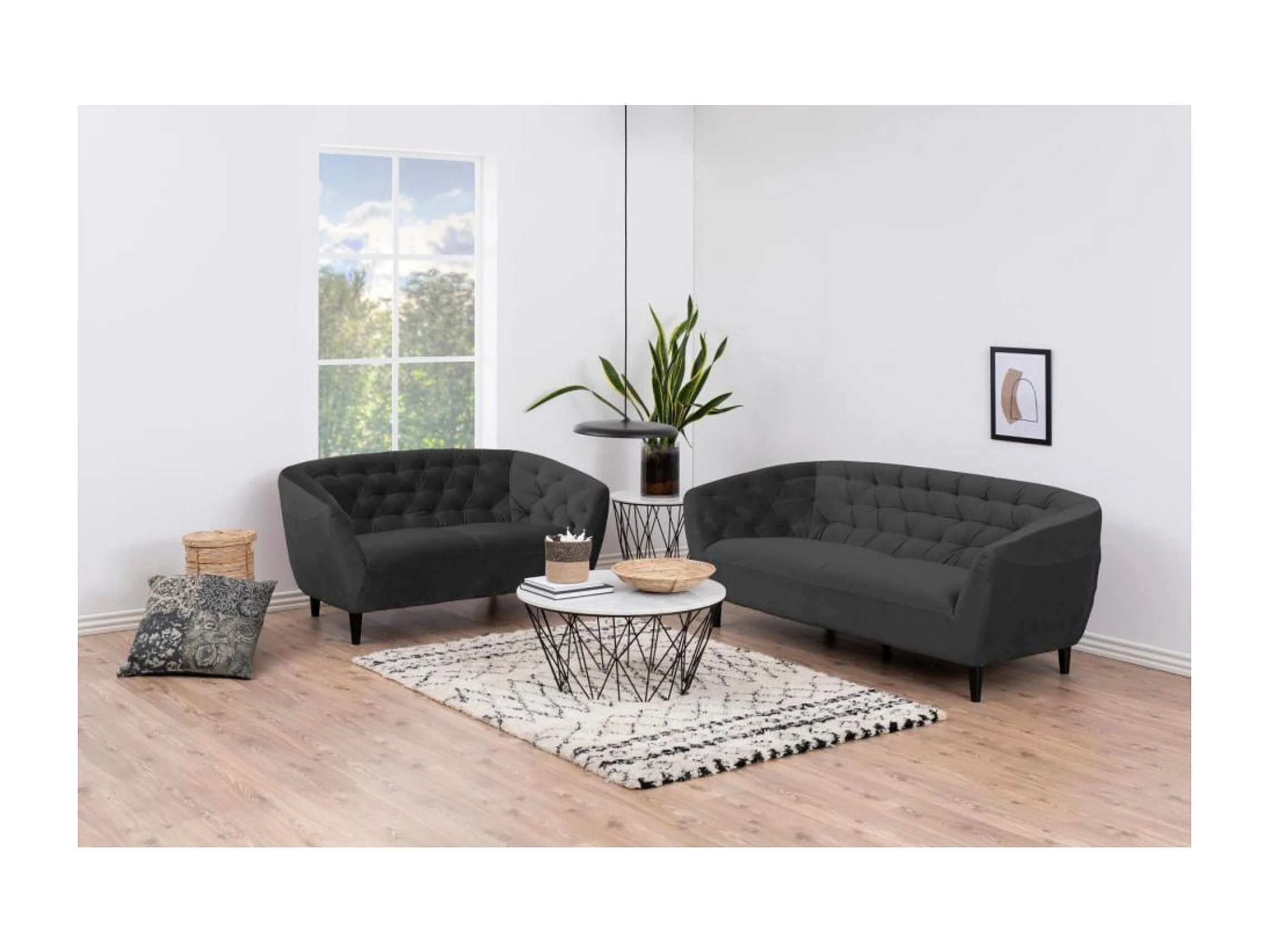 Canapé droit 2 places en velours capitonné L150 - Ria