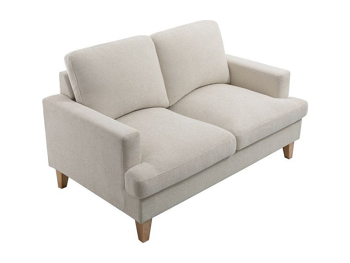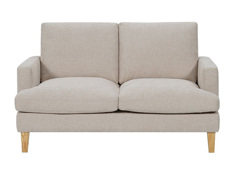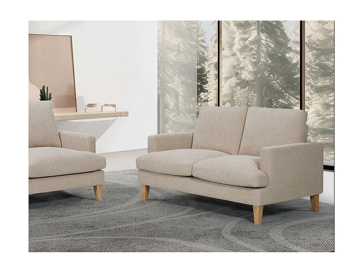 Canapé droit TALMA 2 places en tissu beige pieds bois naturel