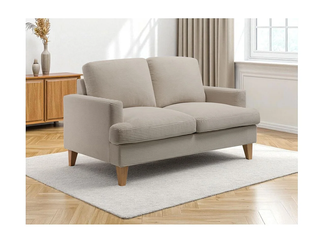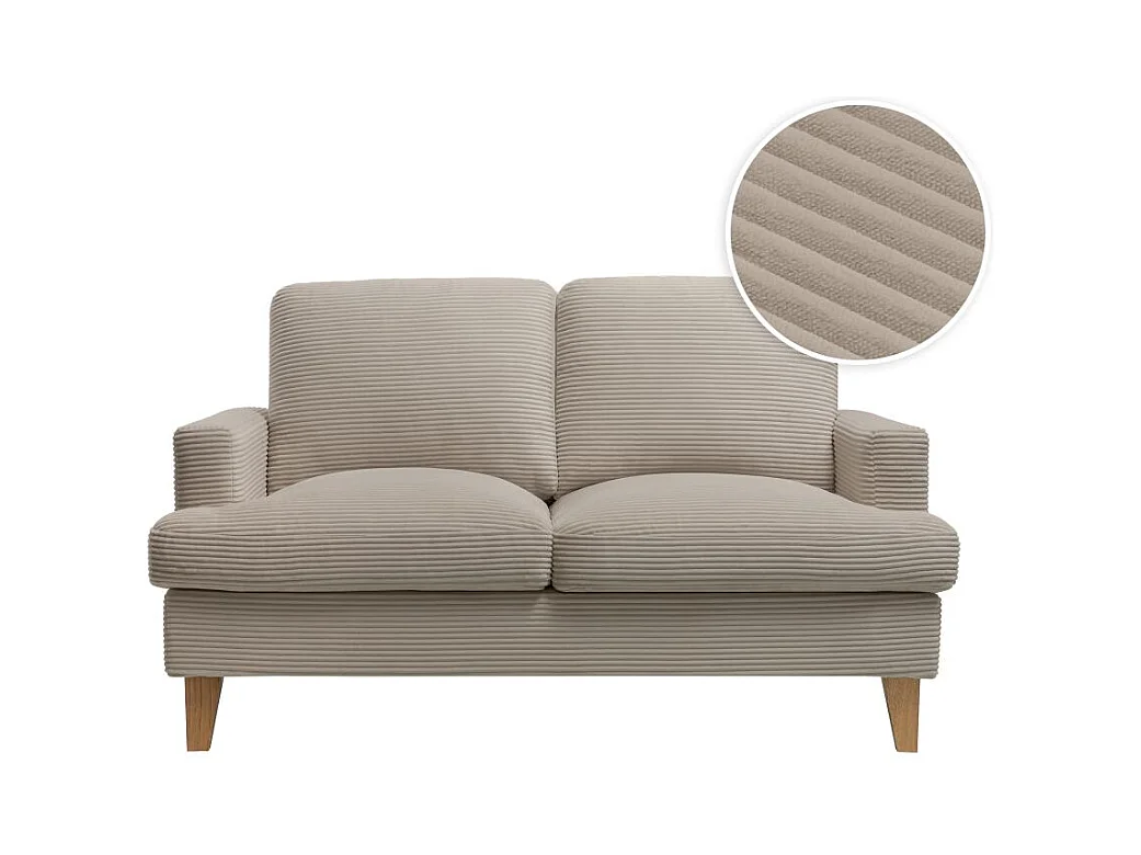 Canapé droit 2 places TALMA en velours côtelé taupe