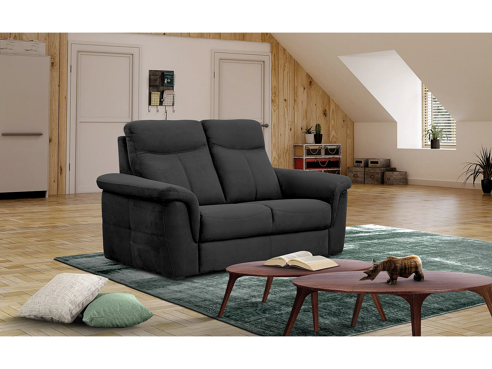 Canapé droit 2 places tissu noir - JONES