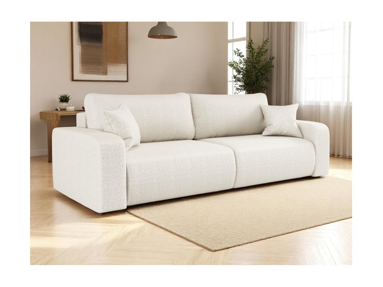 Canapé droit 3 places ALYA convertible en tissu bouclette - Blanc