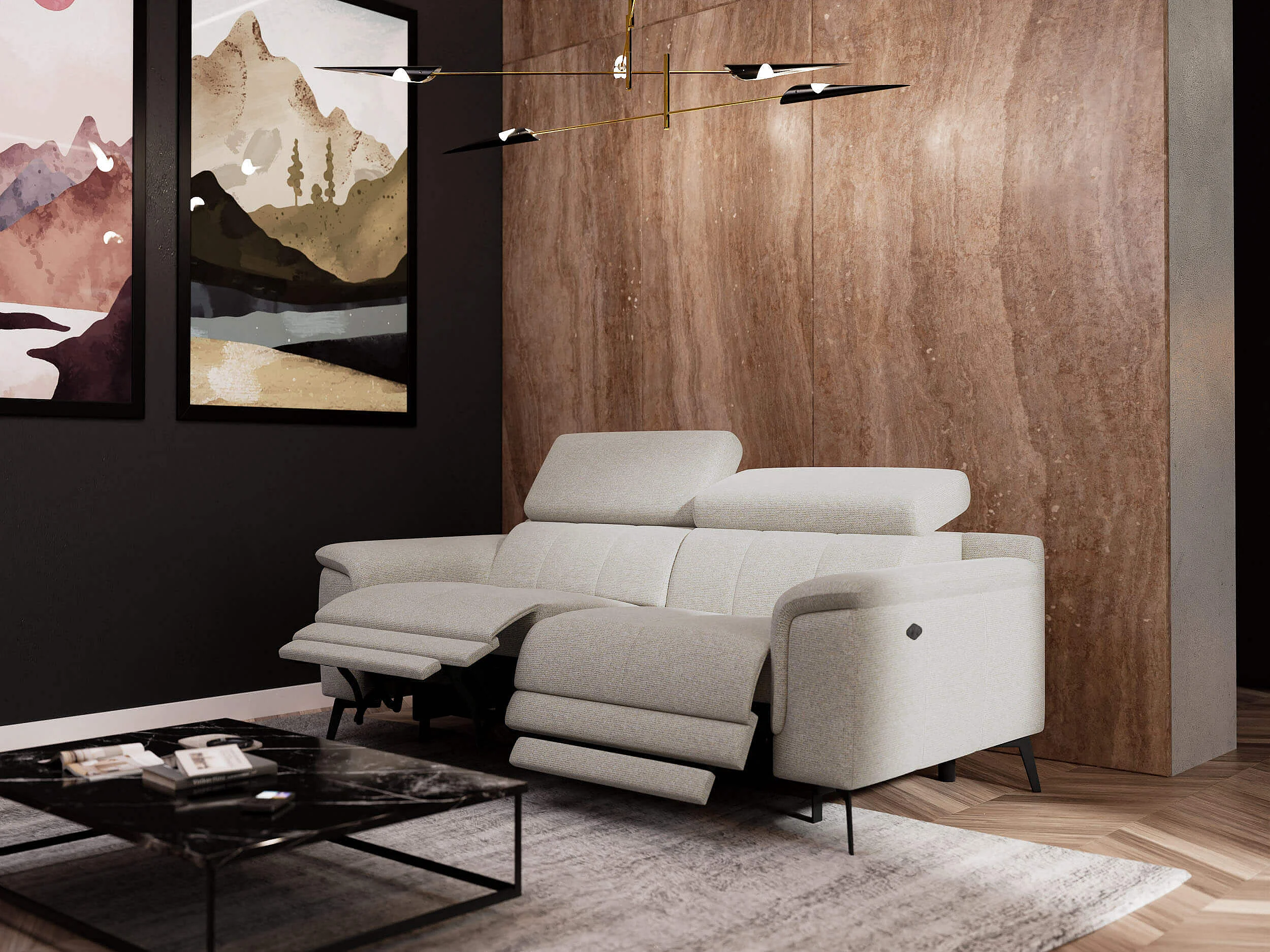 Canapé droit 3 places avec 2 relax électriques tissu gris pérlé - FIERO