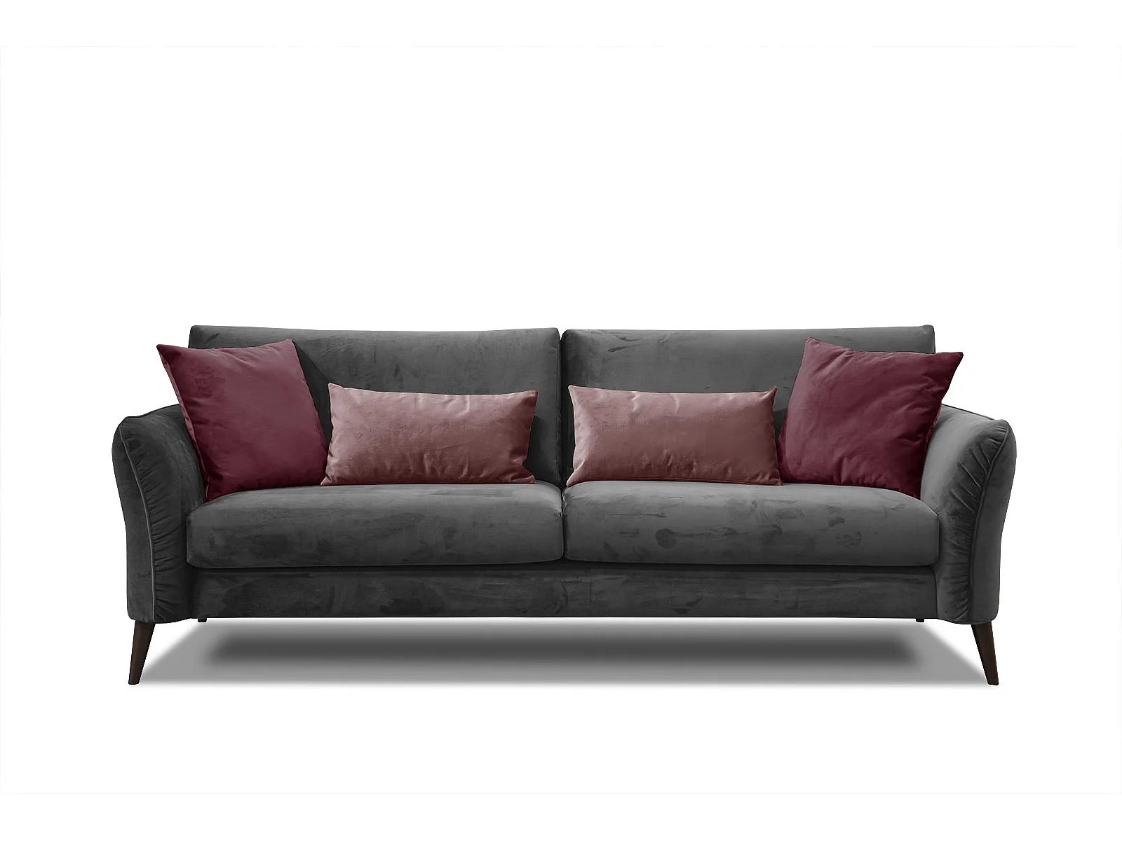 Canapé droit 3 places avec coussins tissu gris foncé - FIGARI