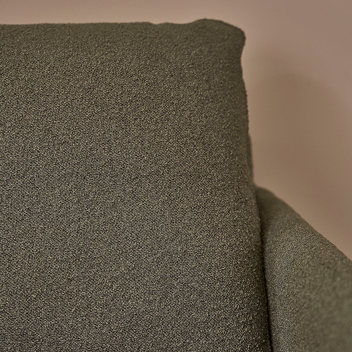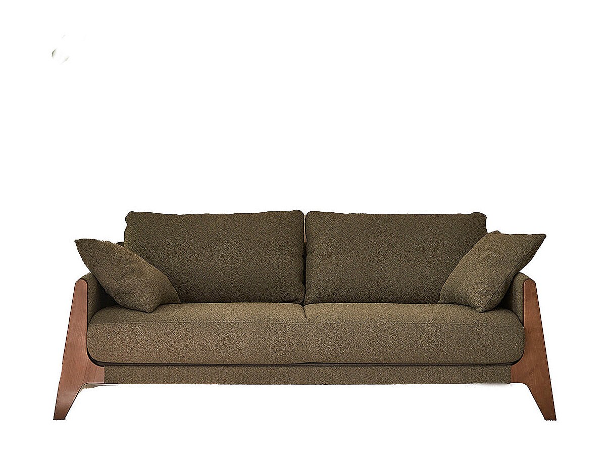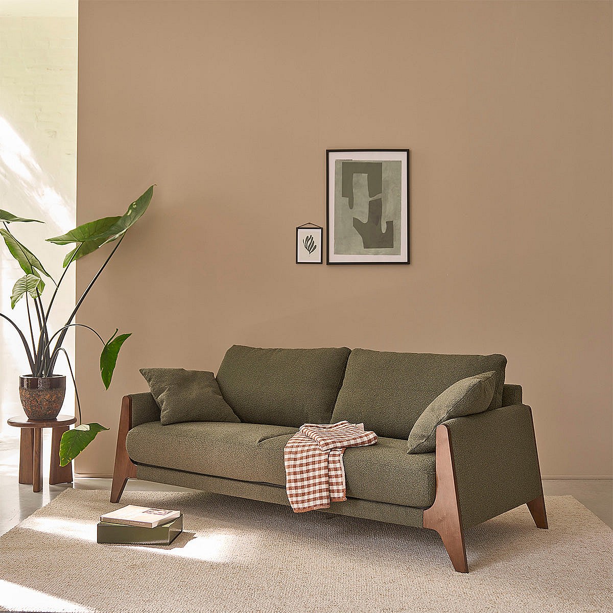 Canapé droit 3 places en bois massif et tissu bouclette kaki