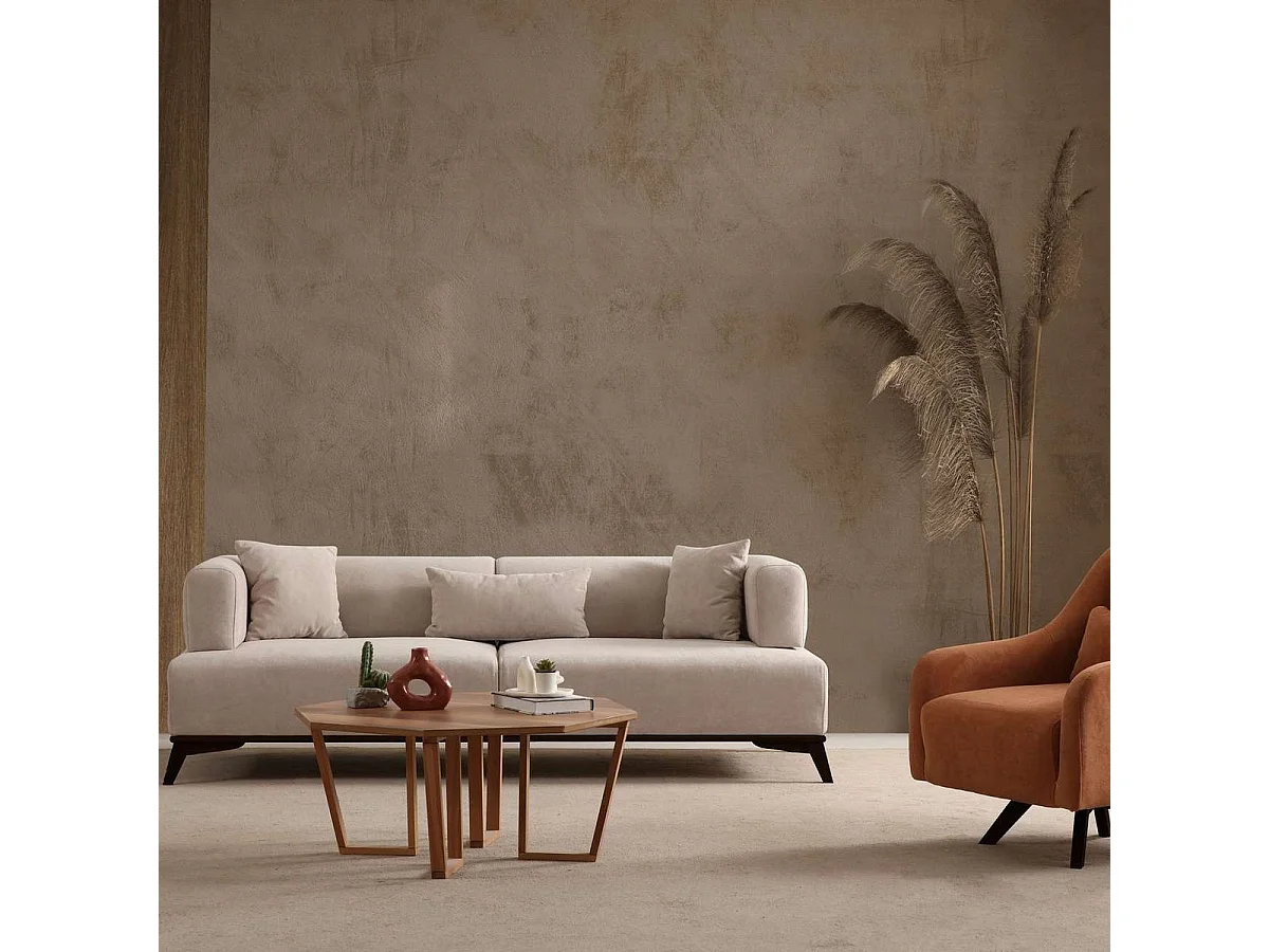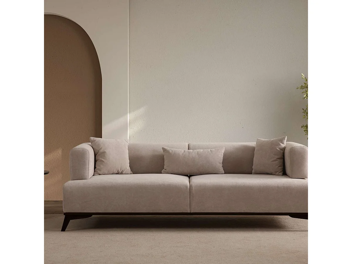 Canapé droit 3 places en tissu taupe, piètement noir - Tano