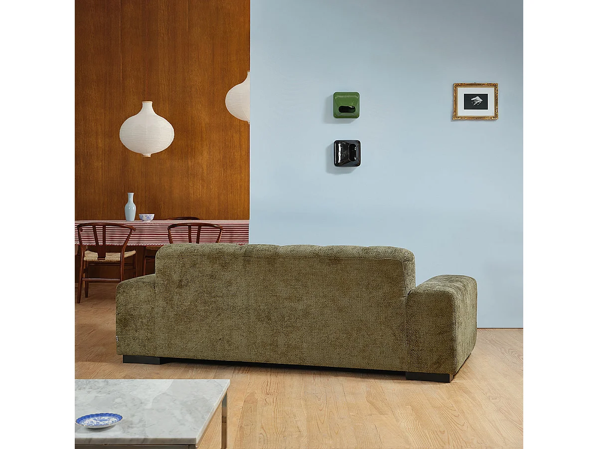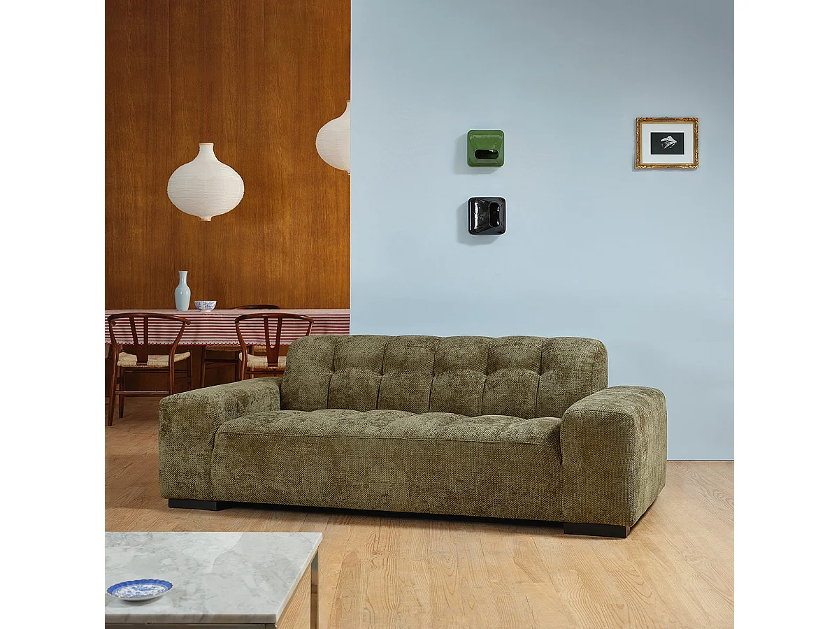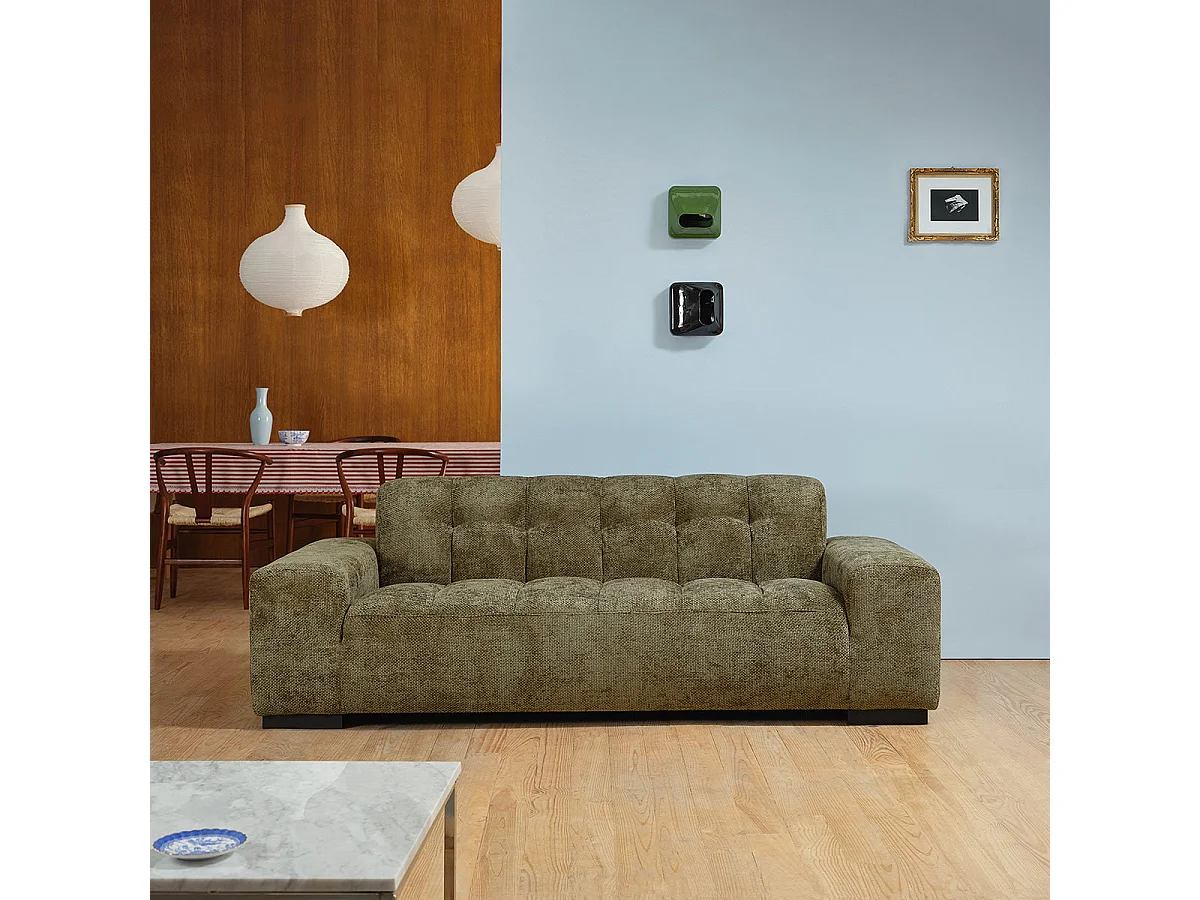 Canapé droit 3 places en velours tressé kaki