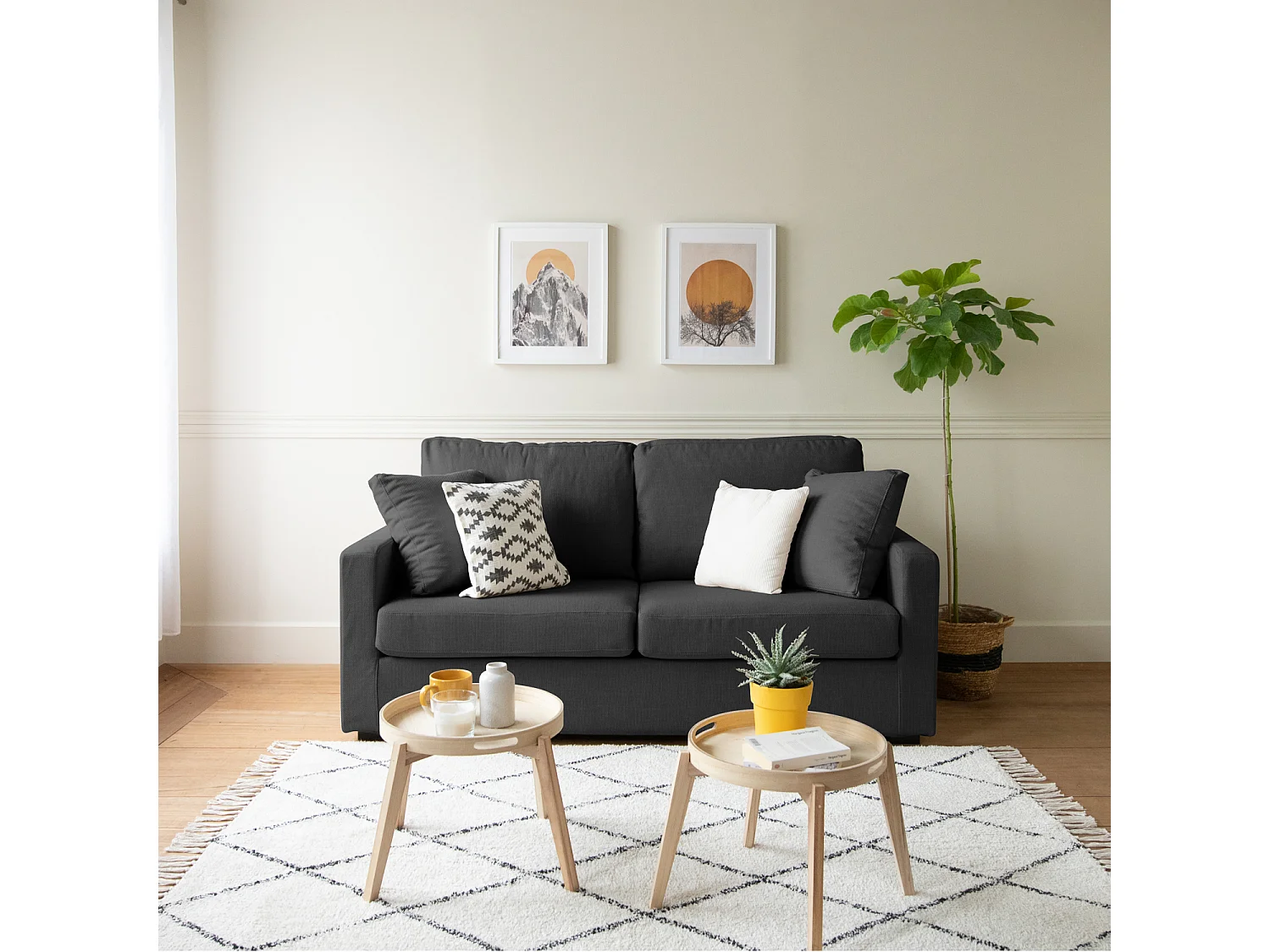 Canapé droit 3 places gris BASTIEN