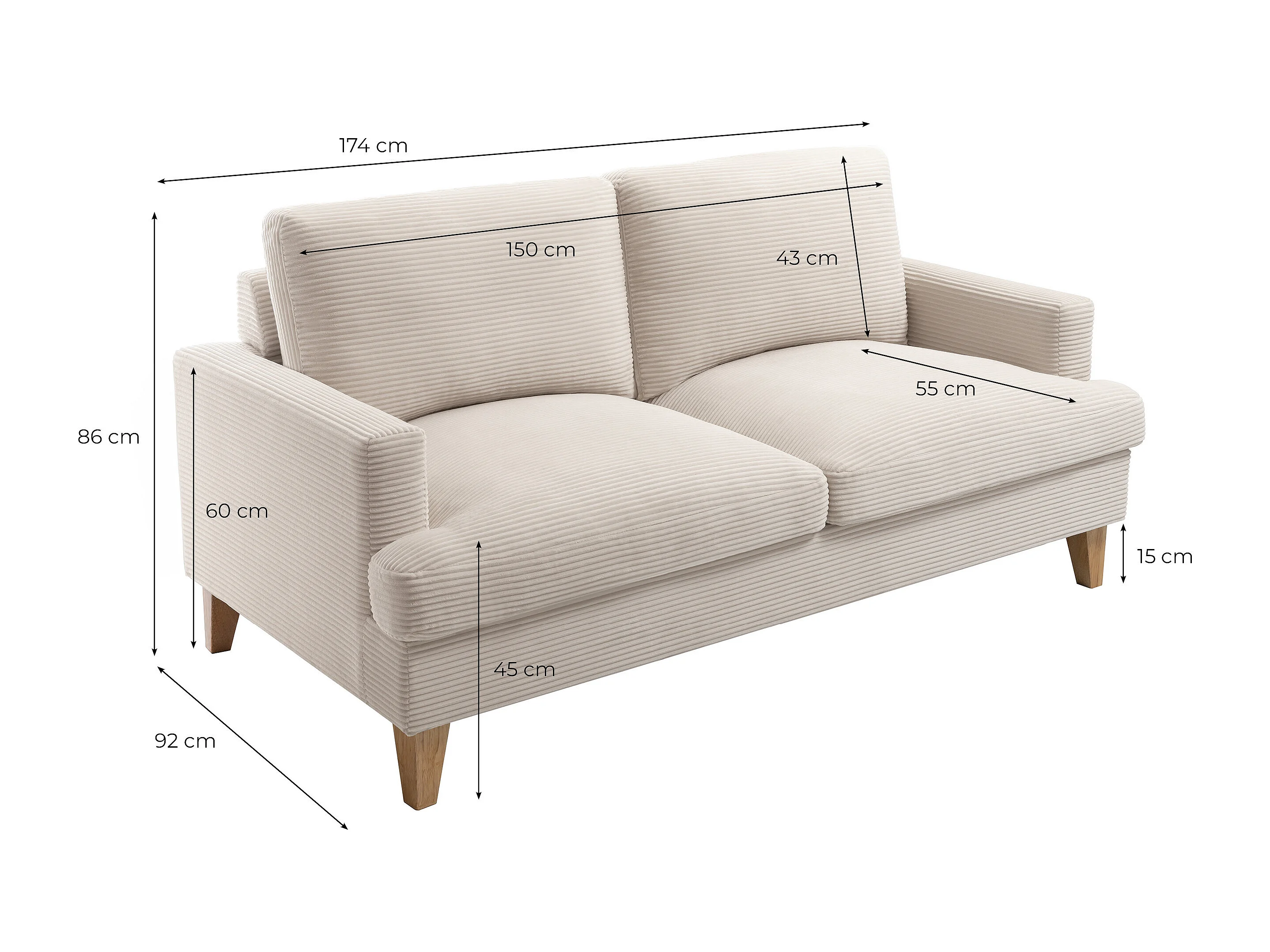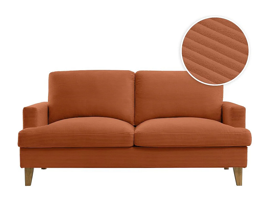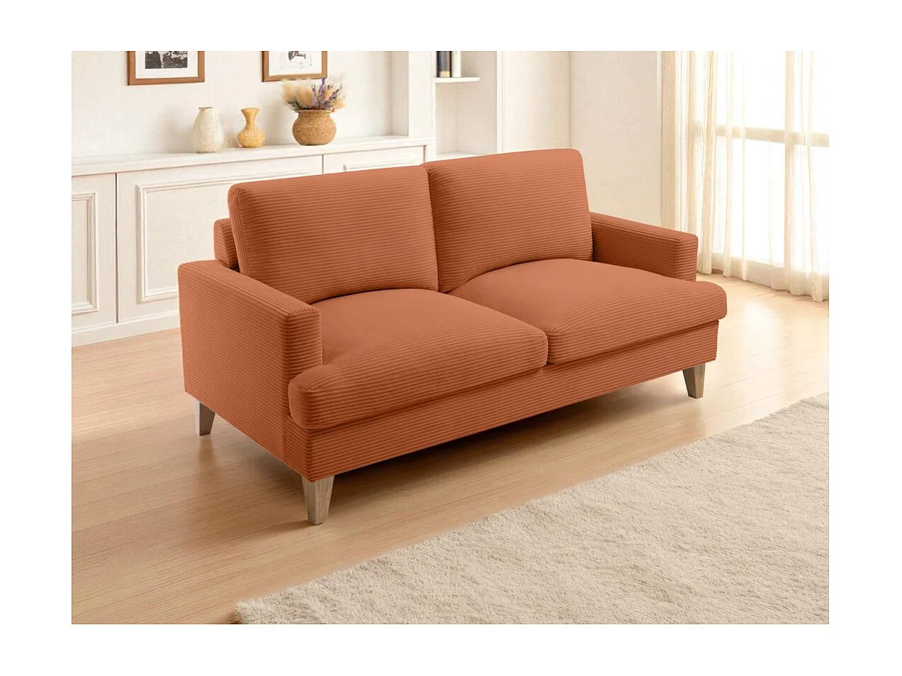 Canapé droit 3 places TALMA en velours côtelé terracotta pieds bois