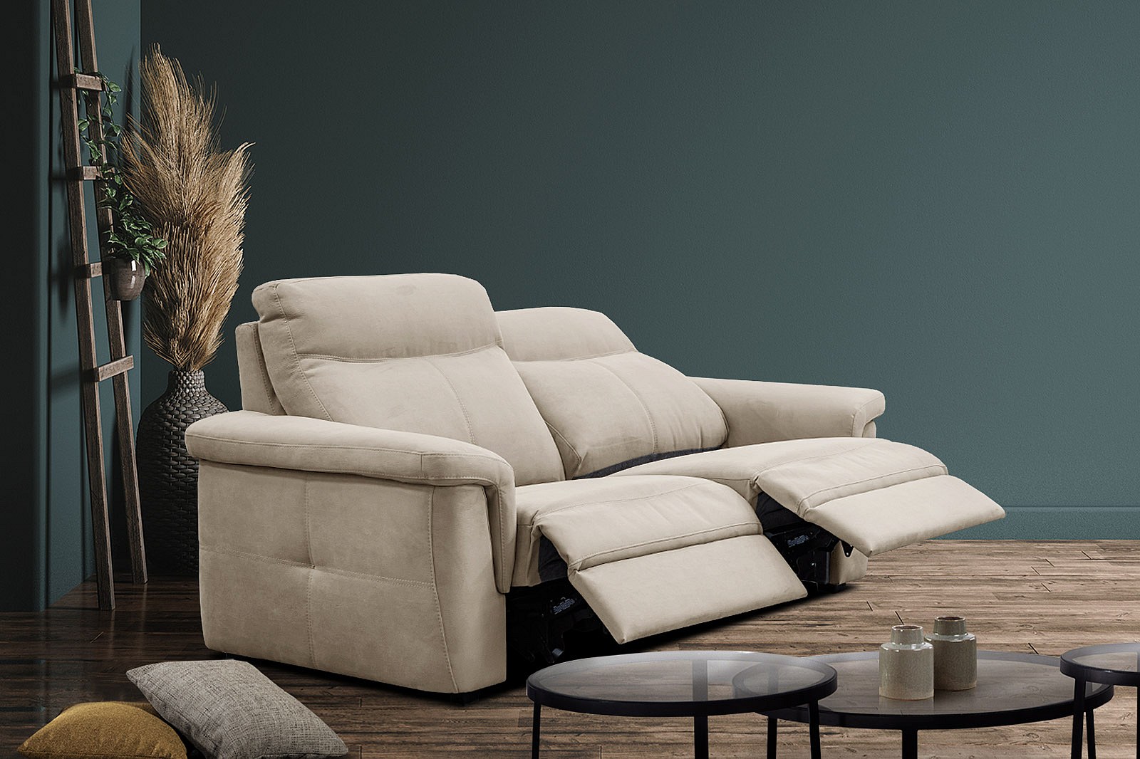 Canapé droit 3 places tissu beige avec relax électrique - JONES