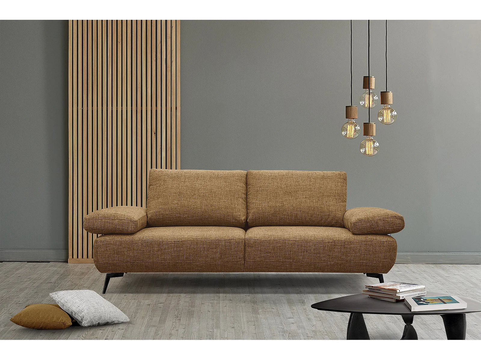 Canapé droit 3 places tissu brun clair - MELLO