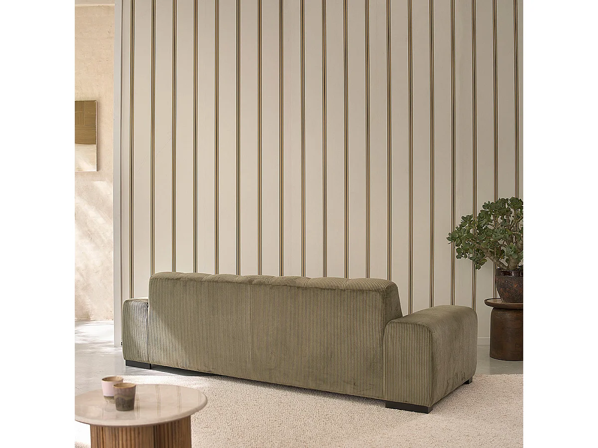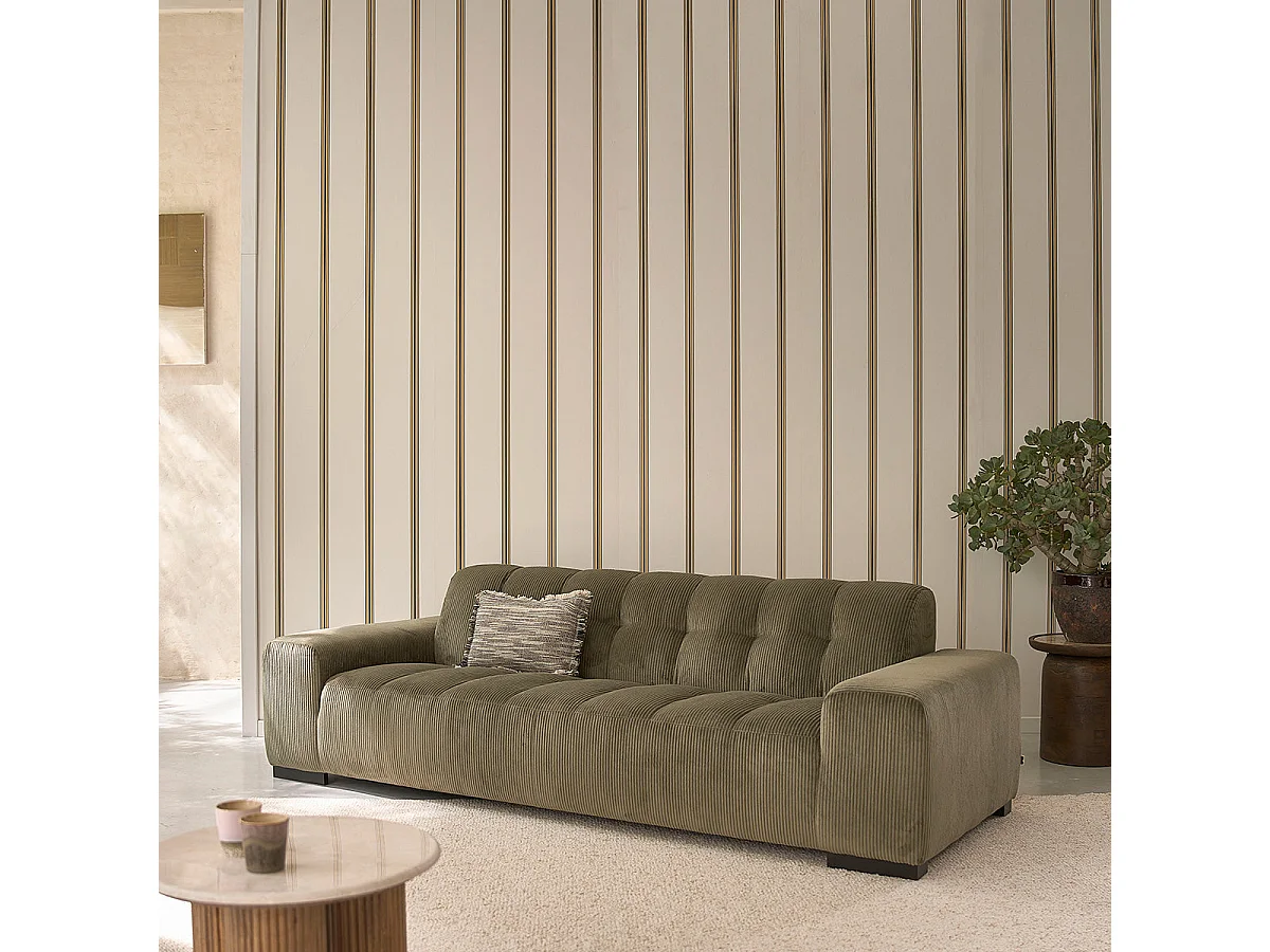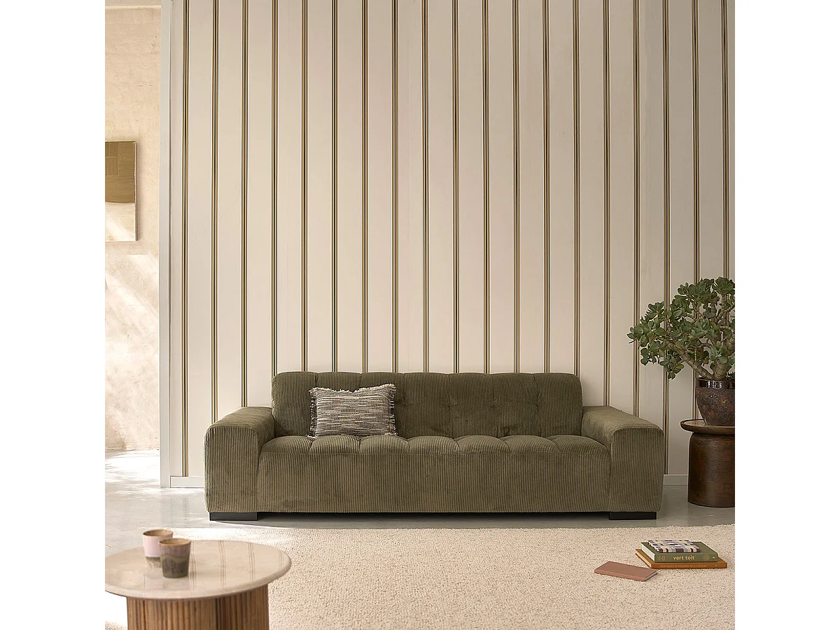 Canapé droit 4 places en velours côtelé kaki