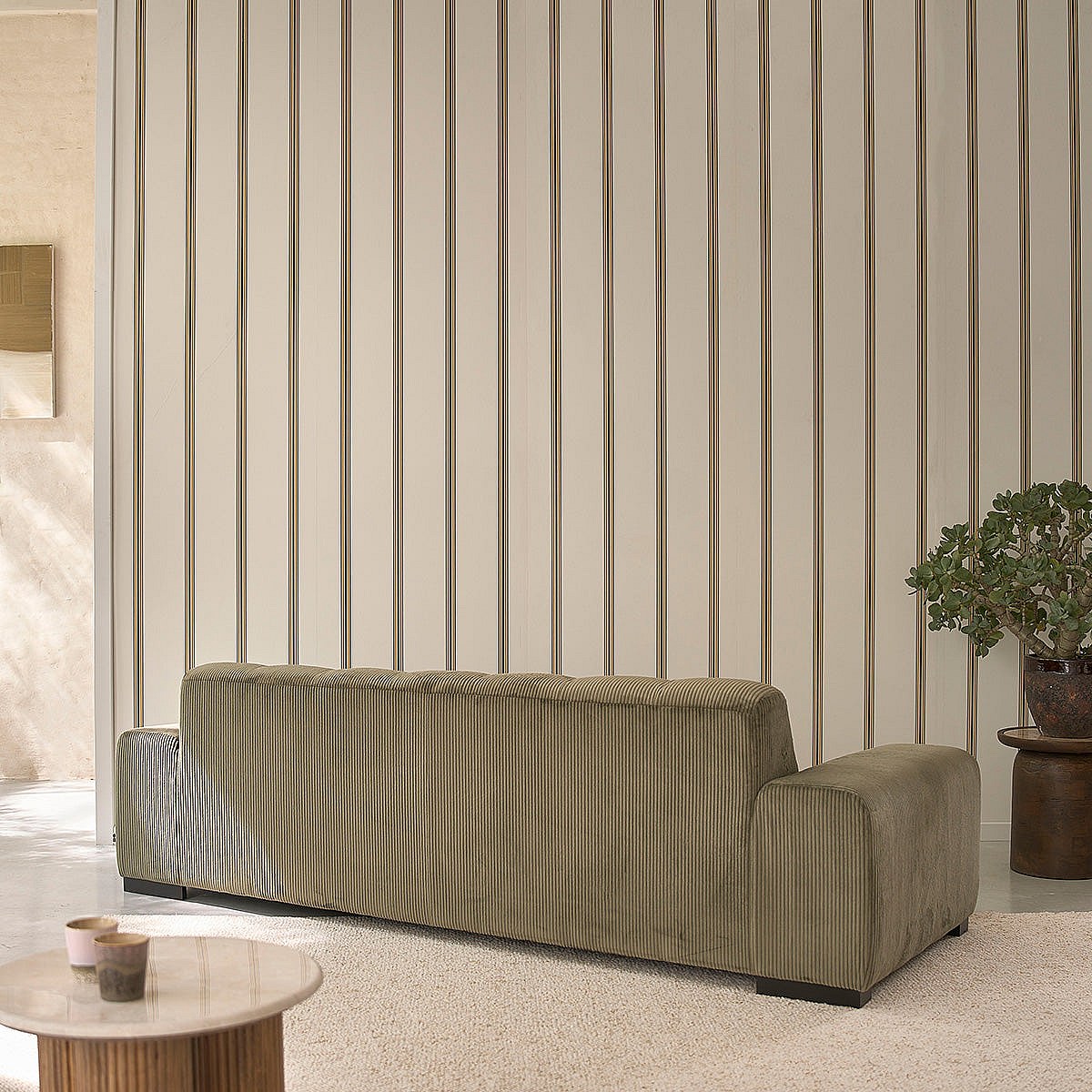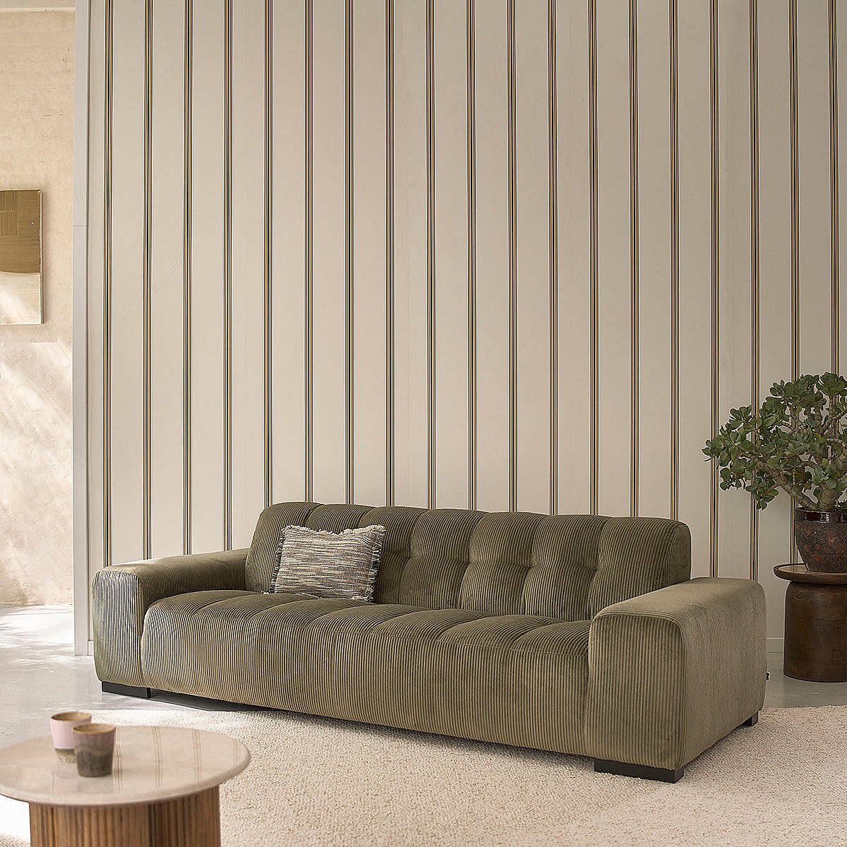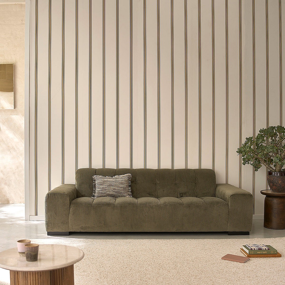 Canapé droit 4 places en velours côtelé kaki