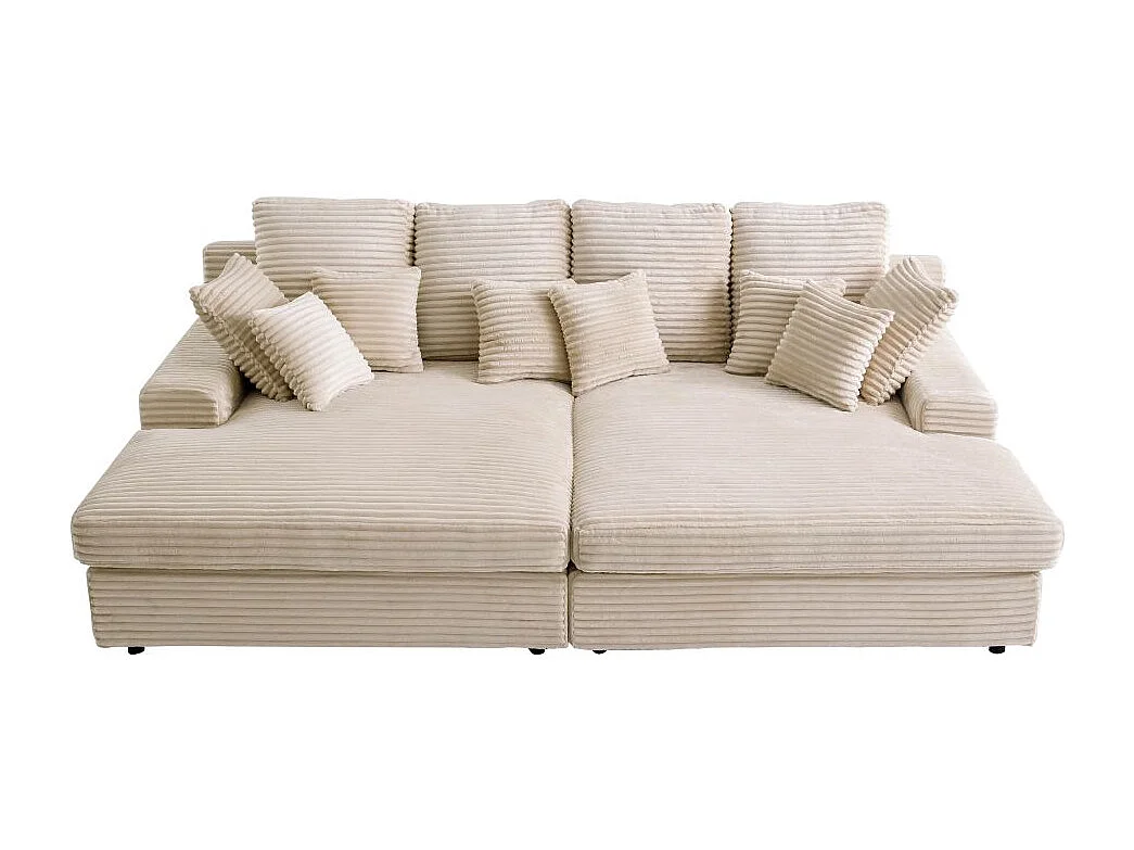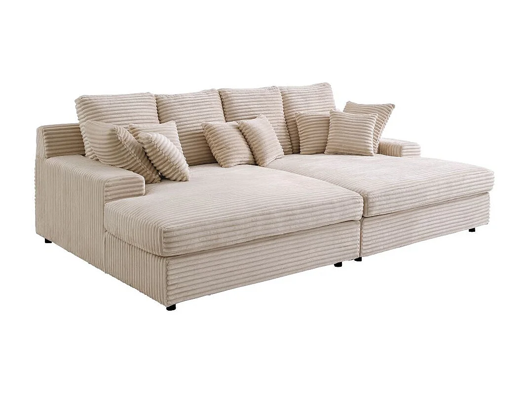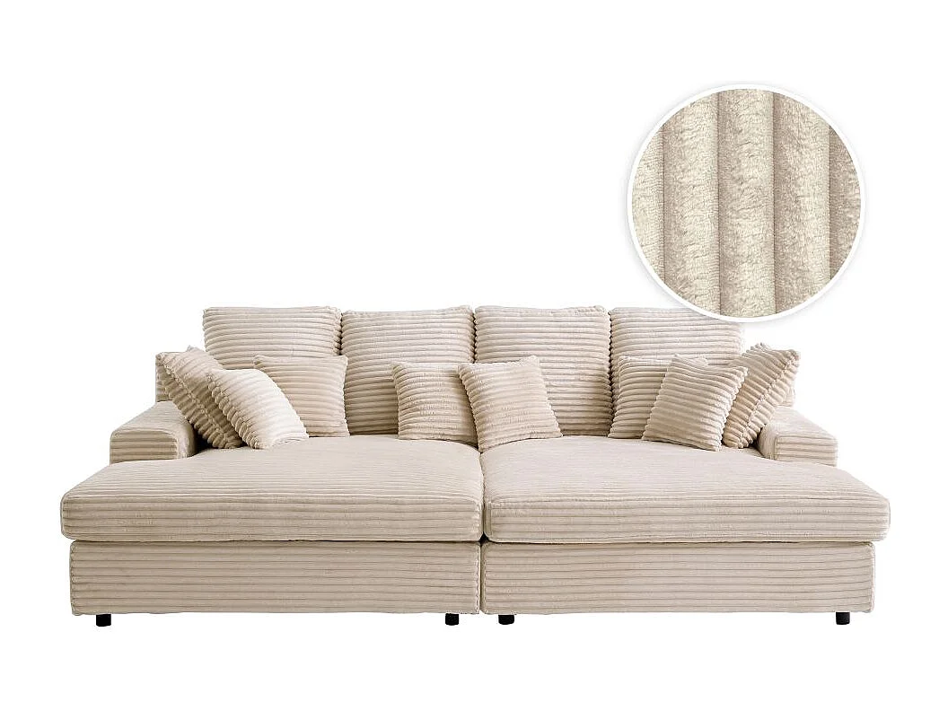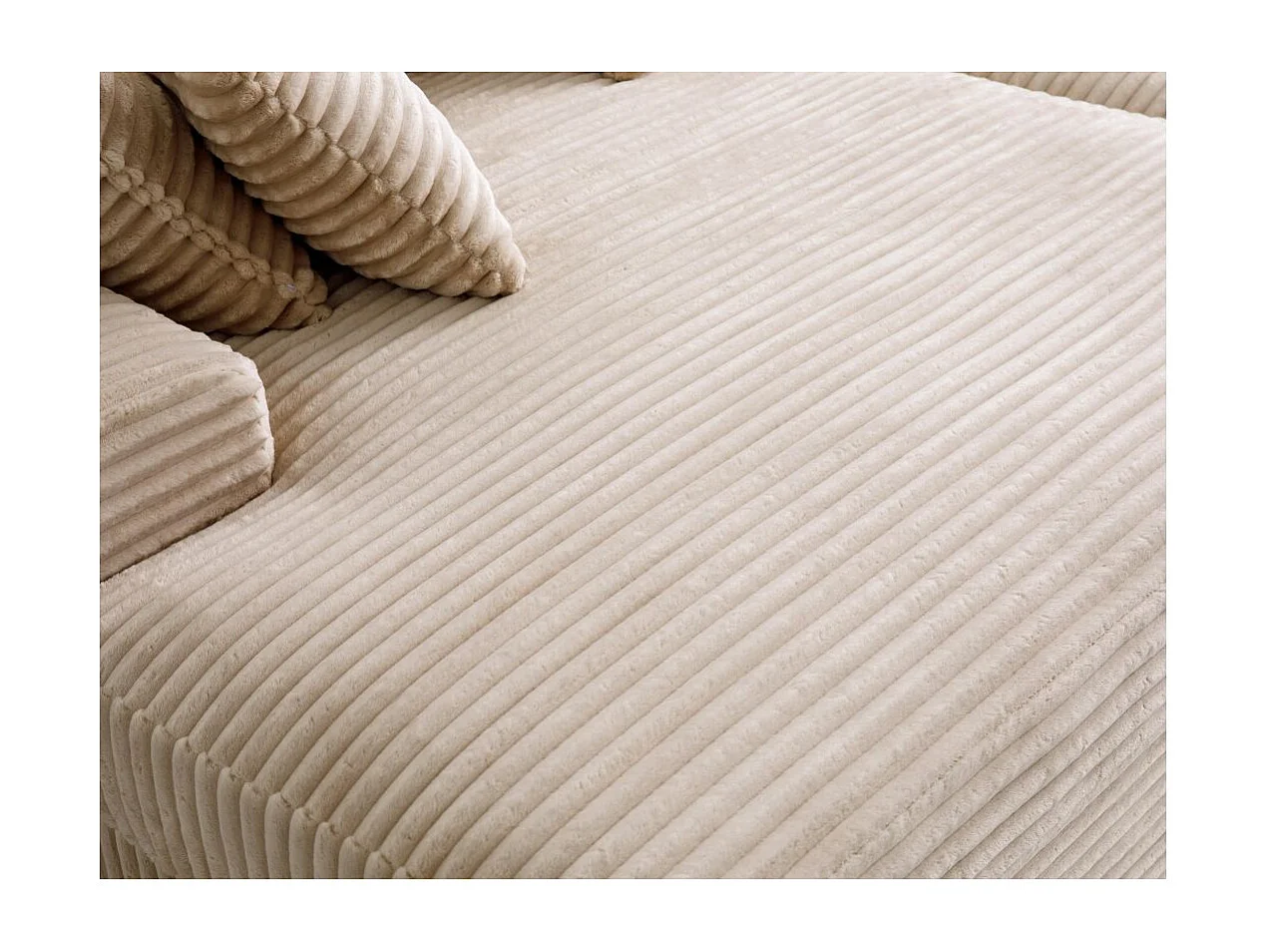 Canapé droit 4 places FLUFFY avec double méridienne et assise profonde en velours côtelé - Beige