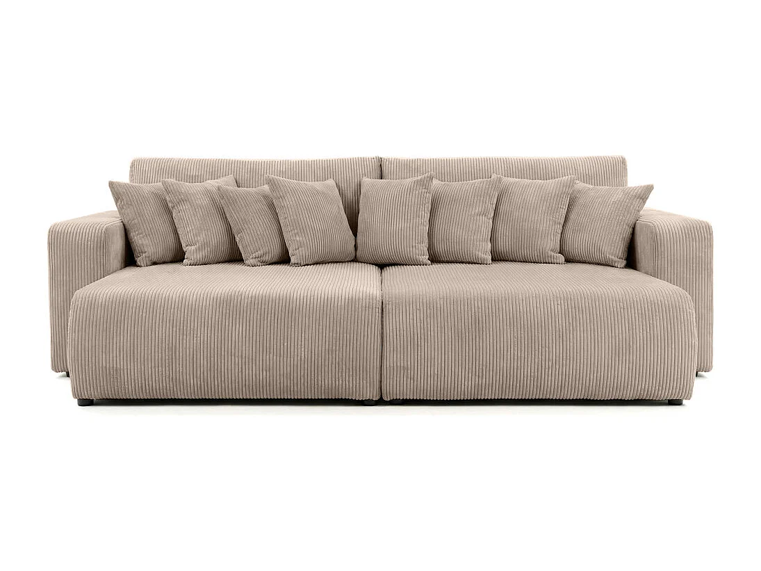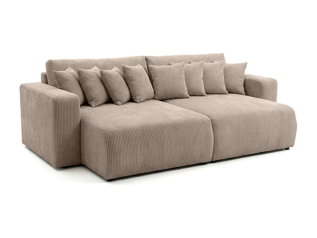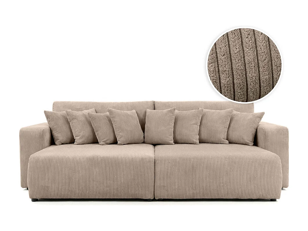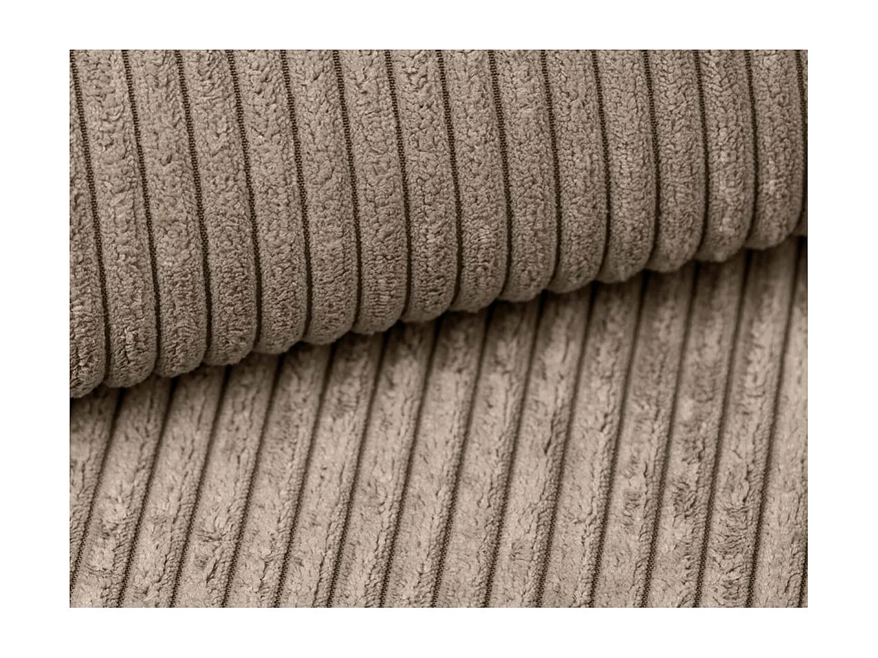 Canapé droit 4 places JADE double méridienne et assise profonde en velours côtelé - Taupe