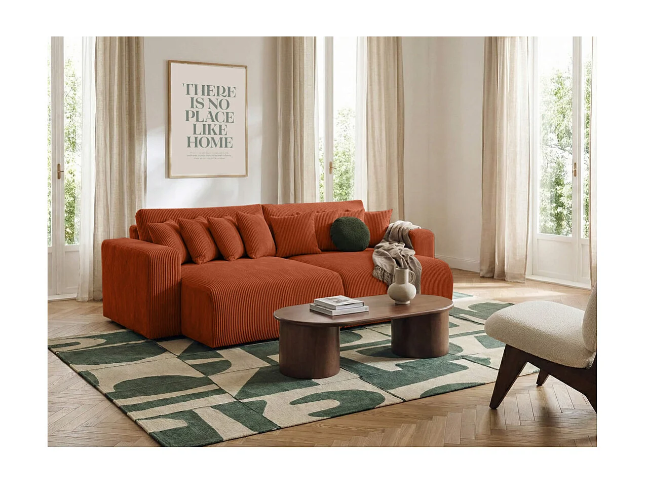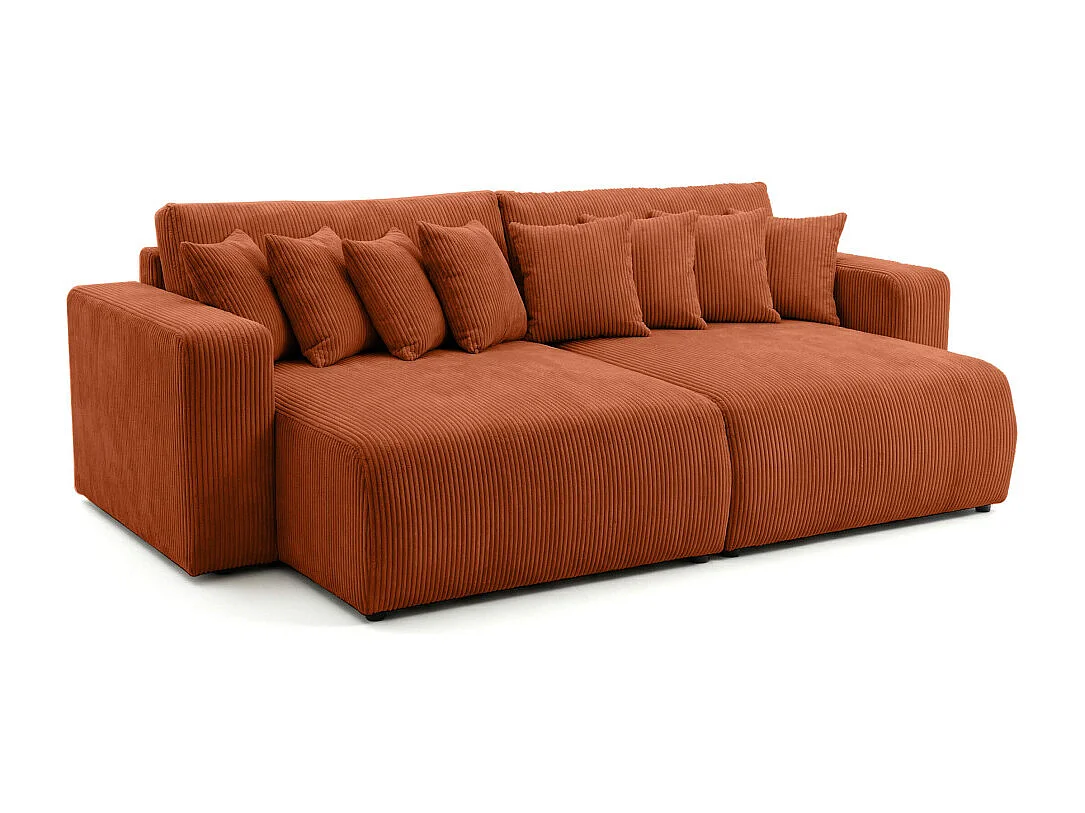 Canapé droit 4 places JADE double méridienne et assise profonde en velours côtelé - Terracotta