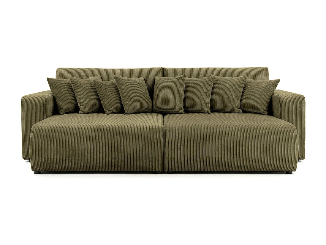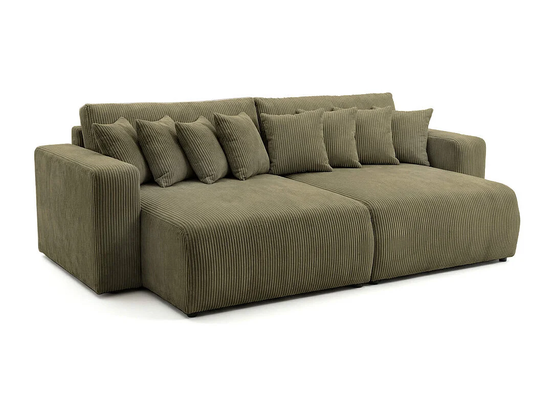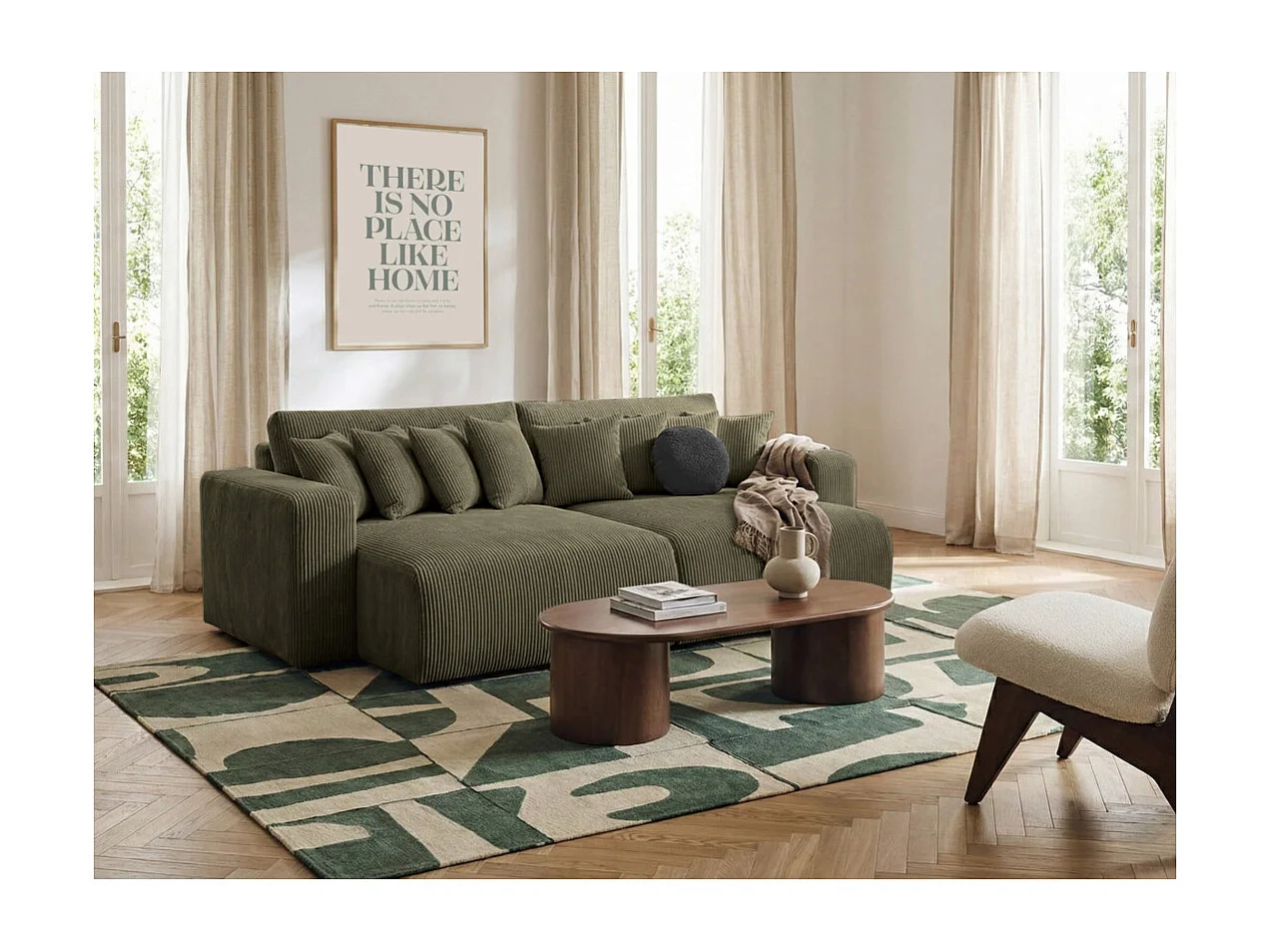 Canapé droit 4 places JADE double méridienne et assise profonde en velours côtelé - Vert