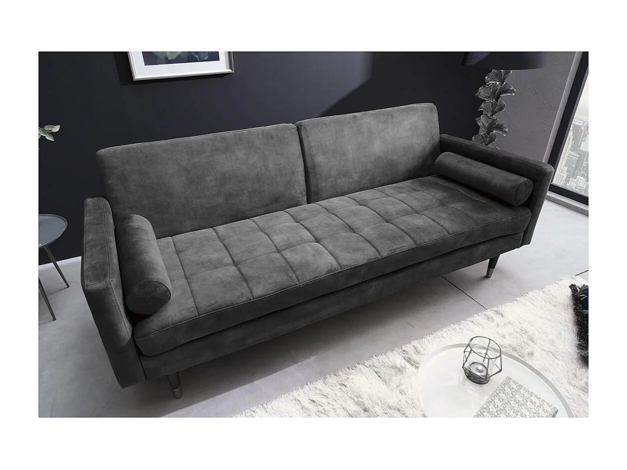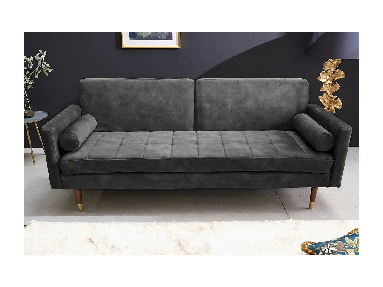 Canapé droit ATELIA gris convertible – Canapé-lit design en velours avec structure en bois massif