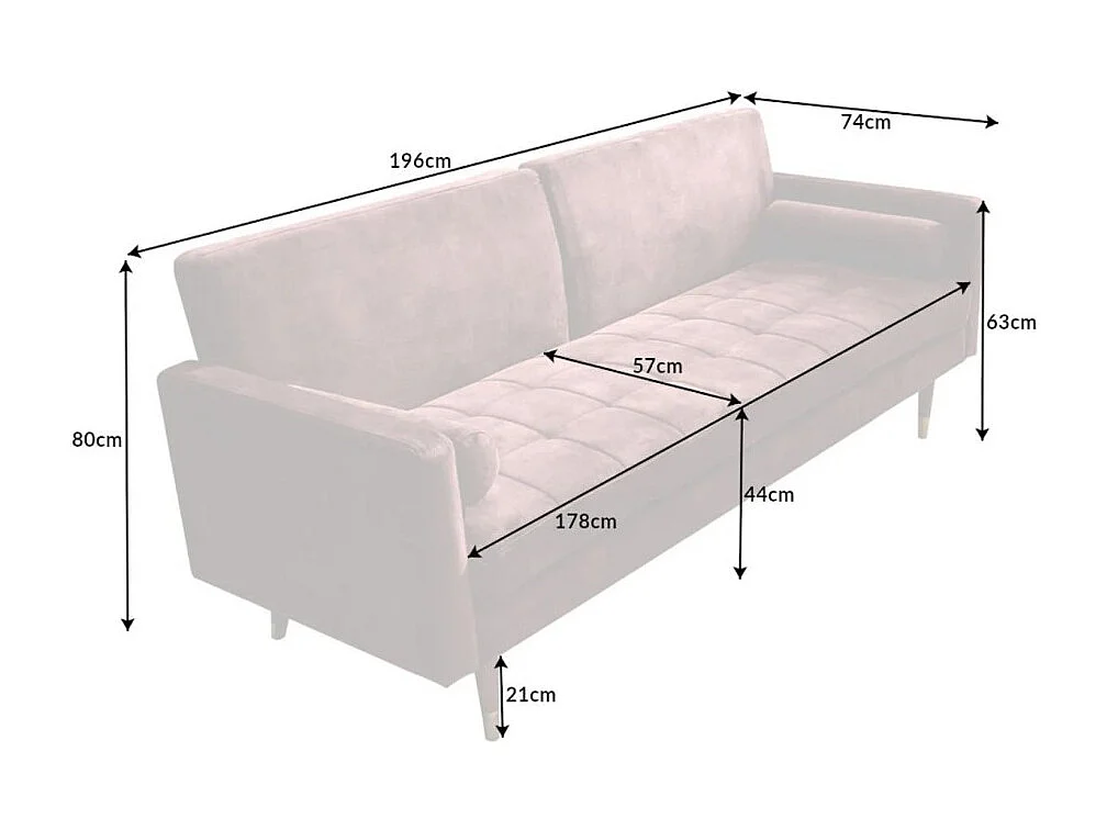 Canapé droit ATELIA rose convertible – Canapé-lit design en velours avec structure en bois massif