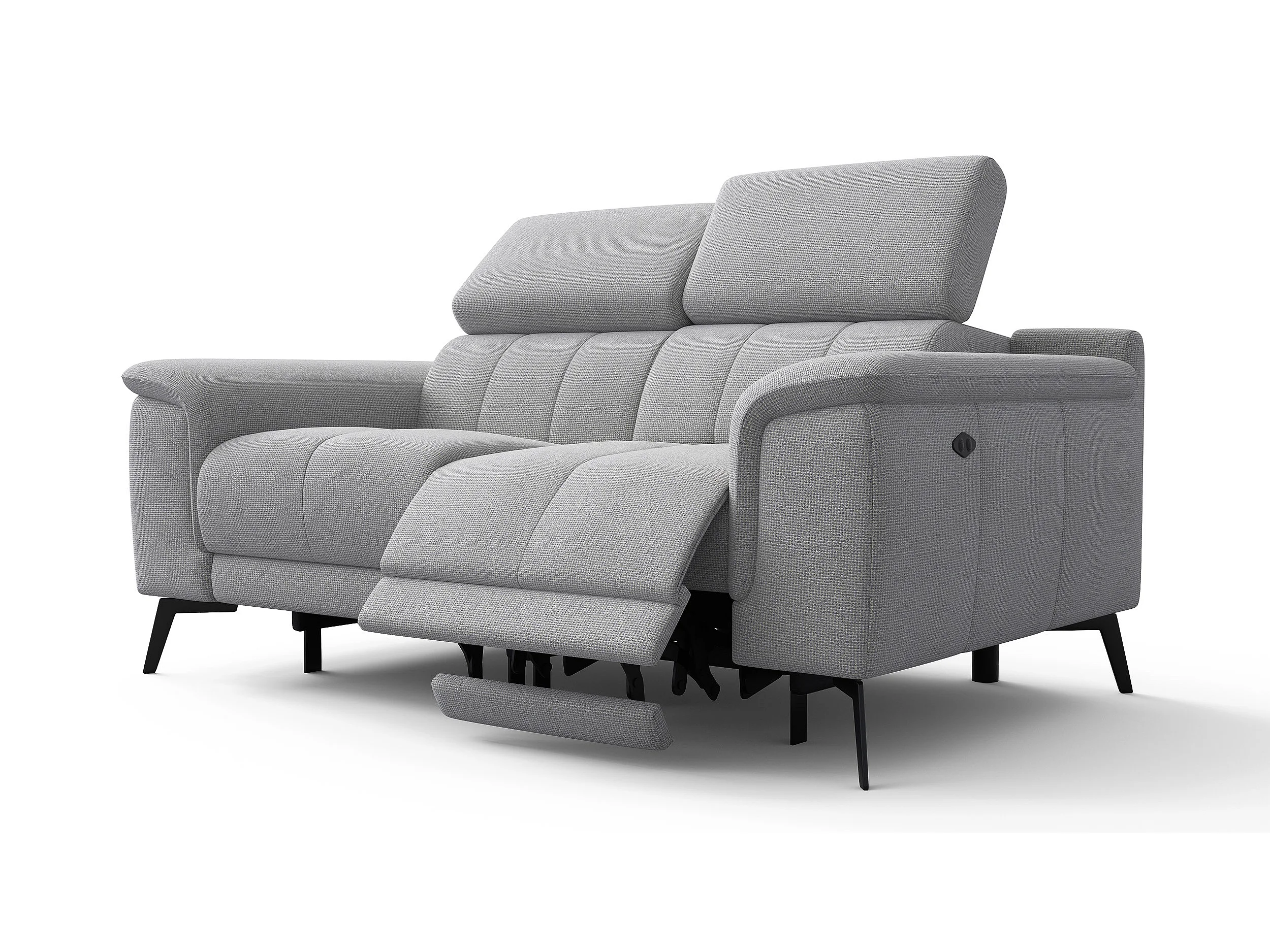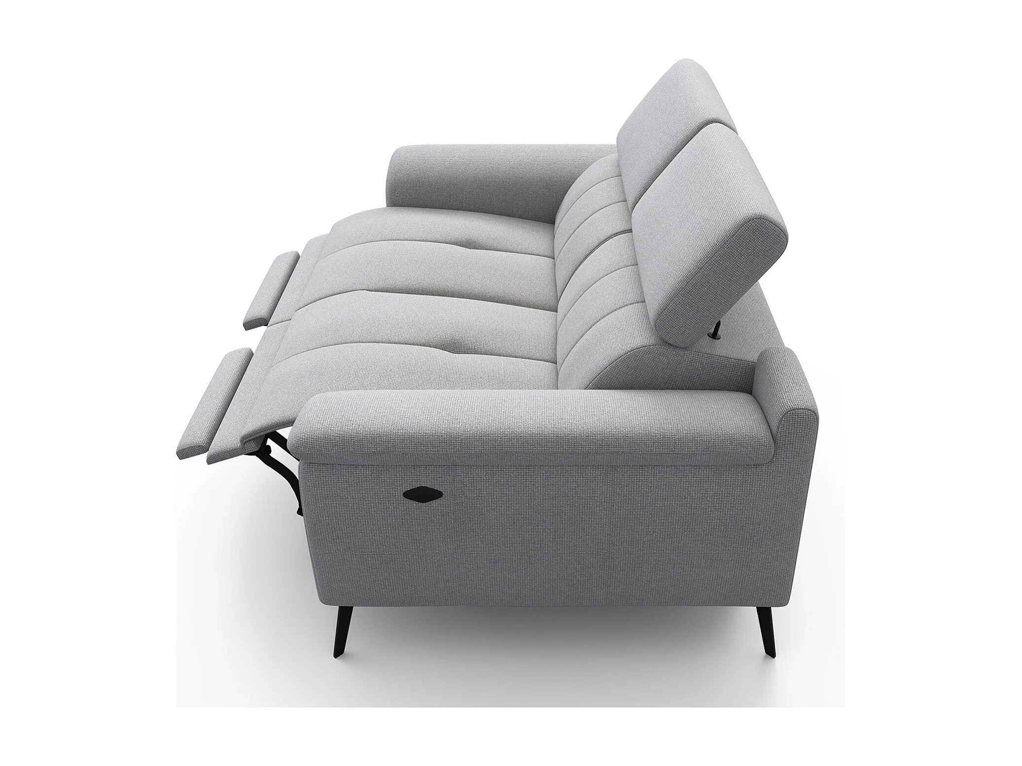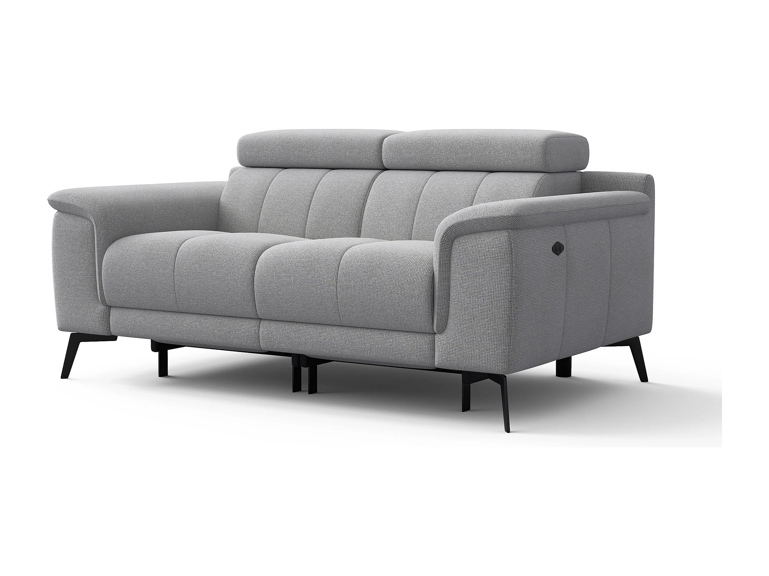 Canapé droit avec 2 relax électriques tissu gris platine - FIERO