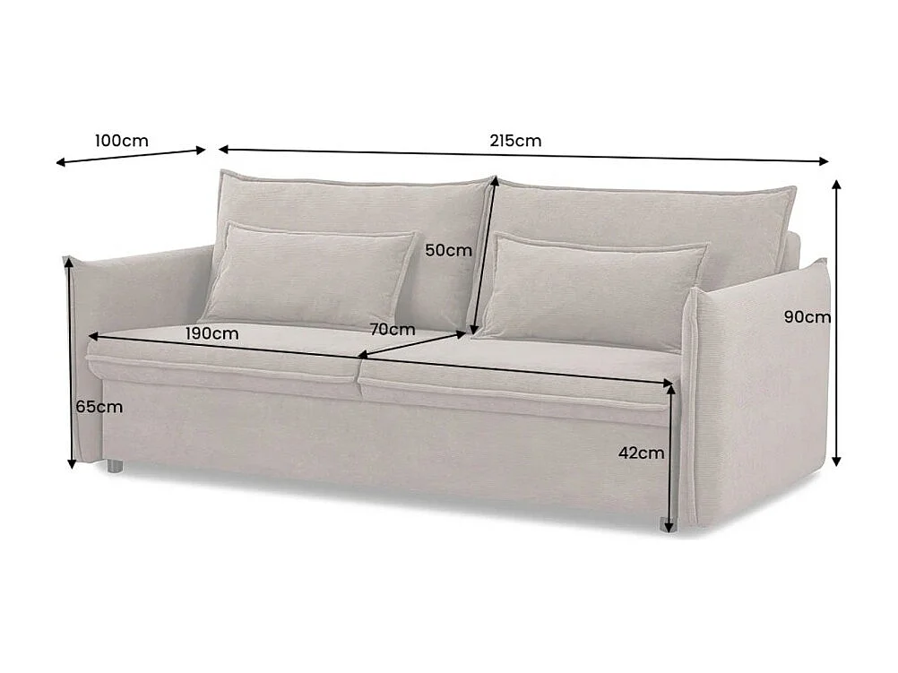 Canapé droit CALDERO gris foncé convertible avec coffre – Canapé-lit en velours côtelé avec rangement intégré