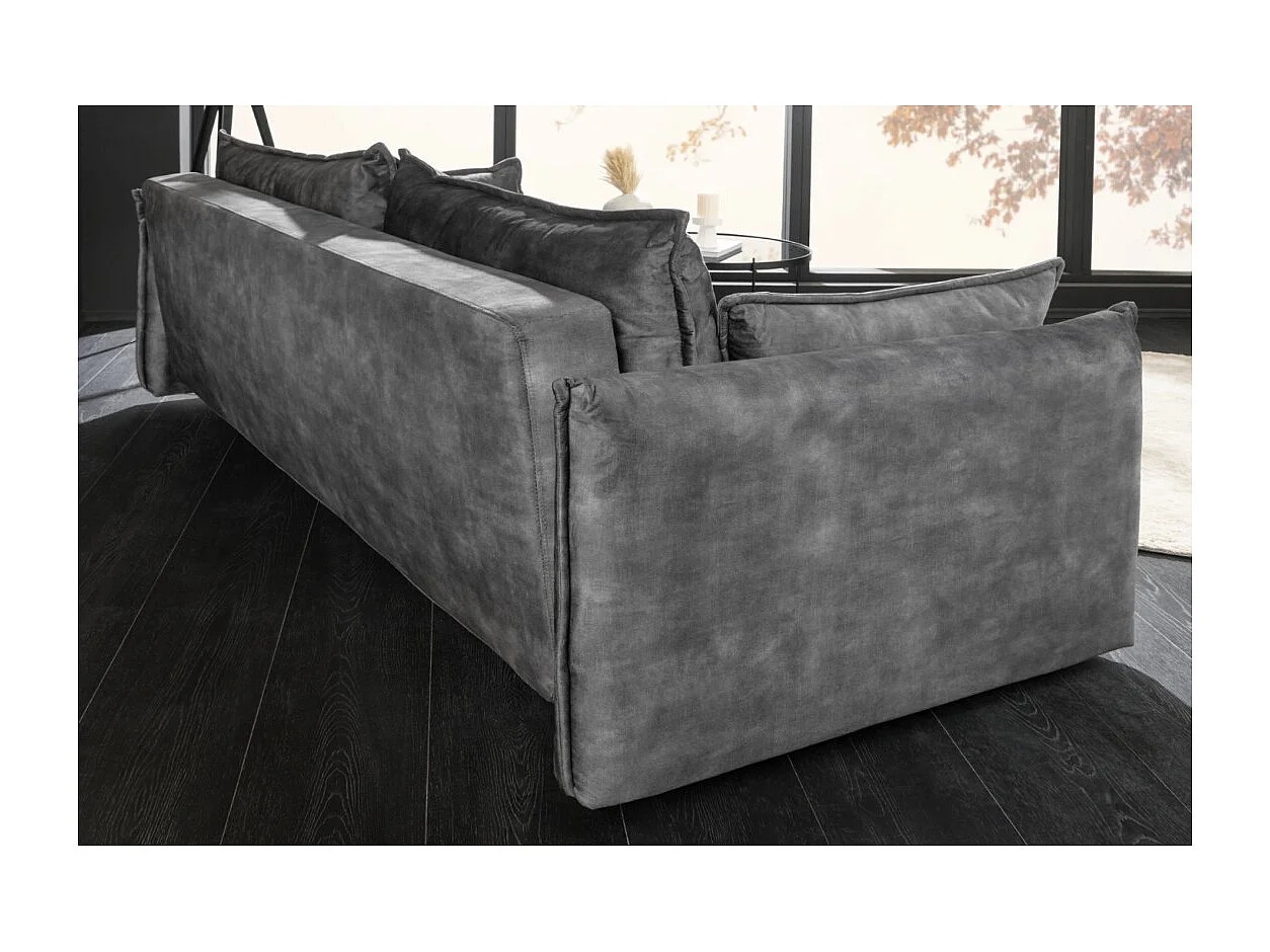 Canapé droit CALDERO gris foncé convertible avec coffre – Canapé-lit en velours doux avec rangement intégré