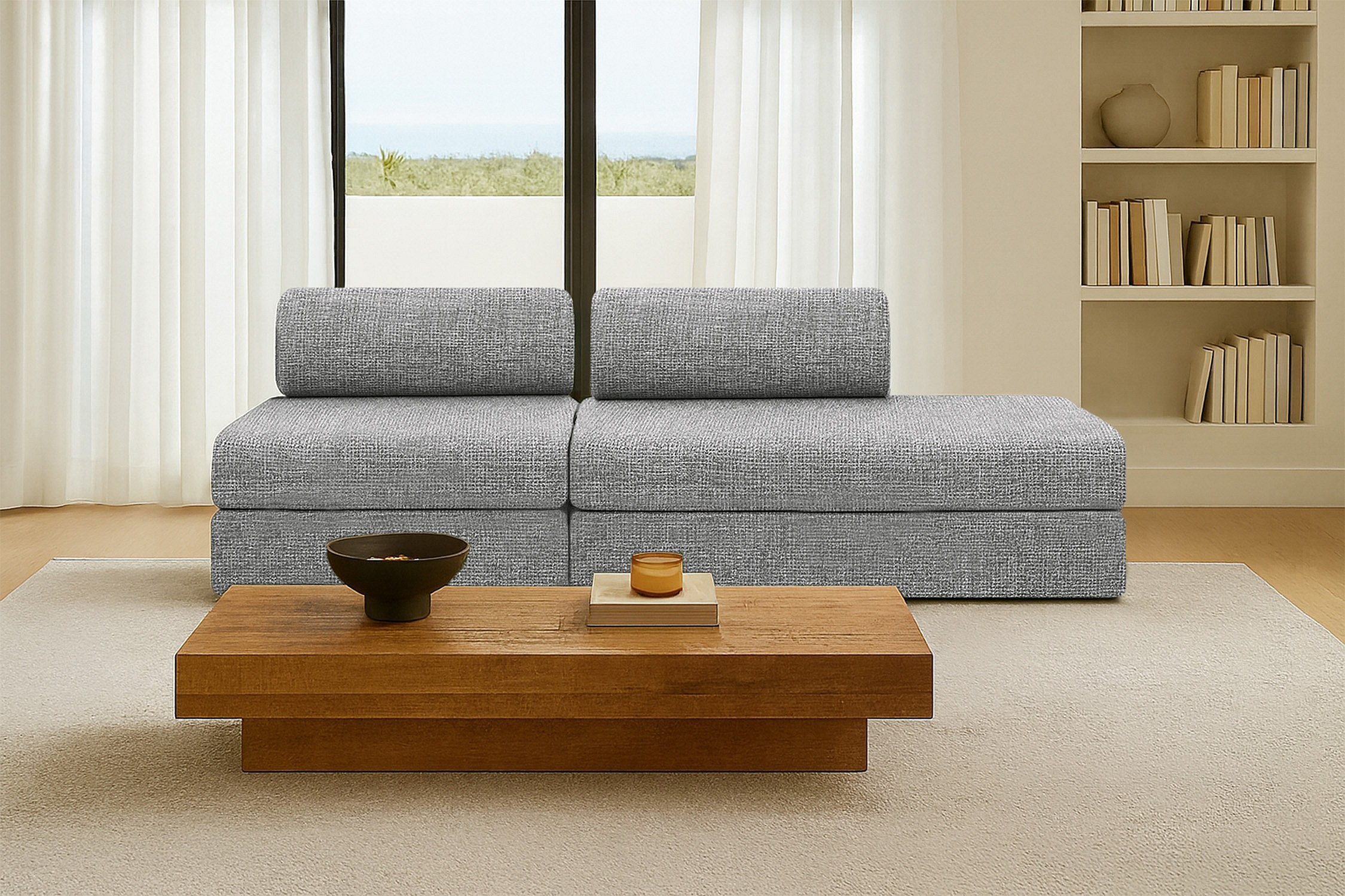 Canapé droit modulable et convertible 3 places - Tissu tweed - Gris