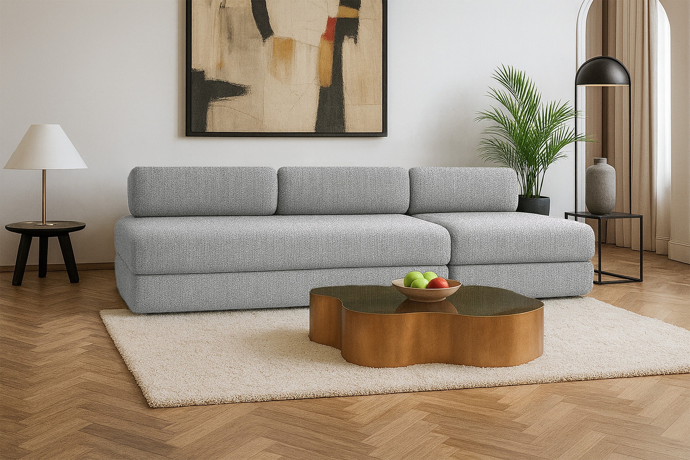 Canapé droit modulable et convertible 4 places - Tissu tweed - Gris