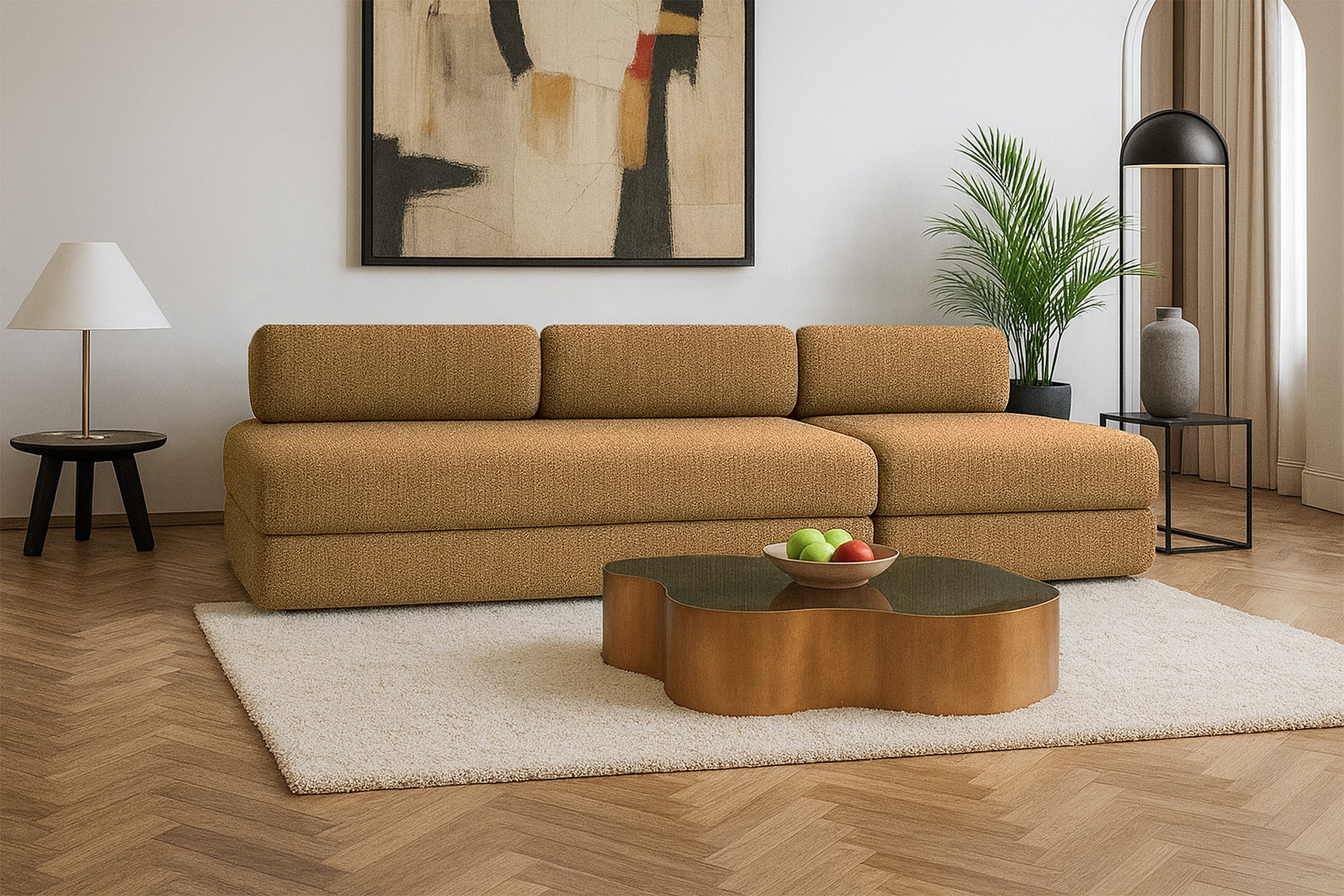 Canapé droit modulable et convertible 4 places - Tissu tweed - Jaune